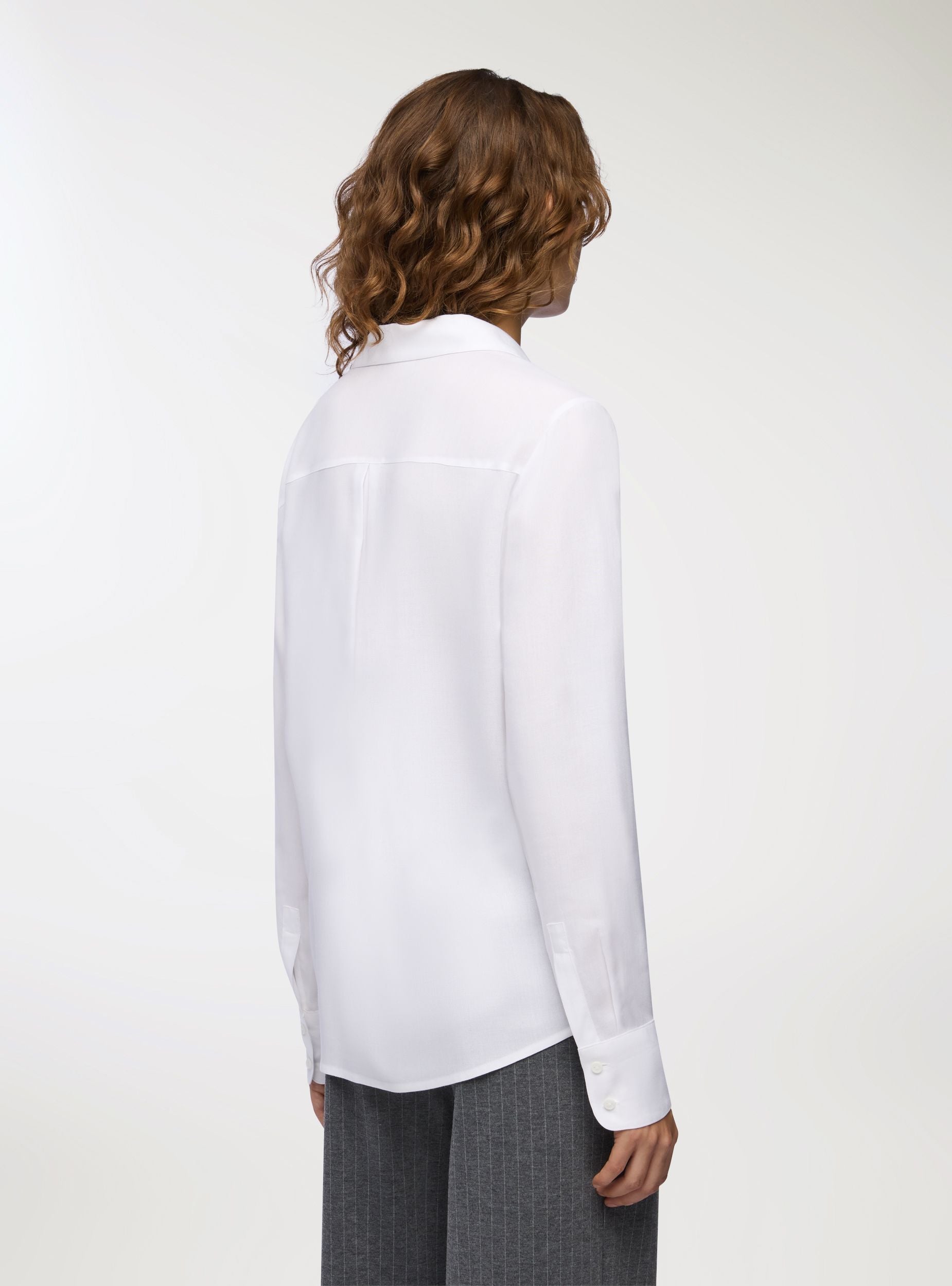 Damenbluse mit langen Ärmeln und einfarbigem Design. Ausgestattet mit offenem Kragen und durchgehender Knopfleiste bietet diese Bluse einen vielseitigen Stil, der für viele Gelegenheiten geeignet ist. Die reguläre Passform sorgt für Komfort und Bewegungsfreiheit, was sie ideal für einen professionellen oder lässigen Look macht. Perfekt kombinierbar mit eleganten Hosen oder Jeans für ein ausgewogenes und raffiniertes Outfit.Details