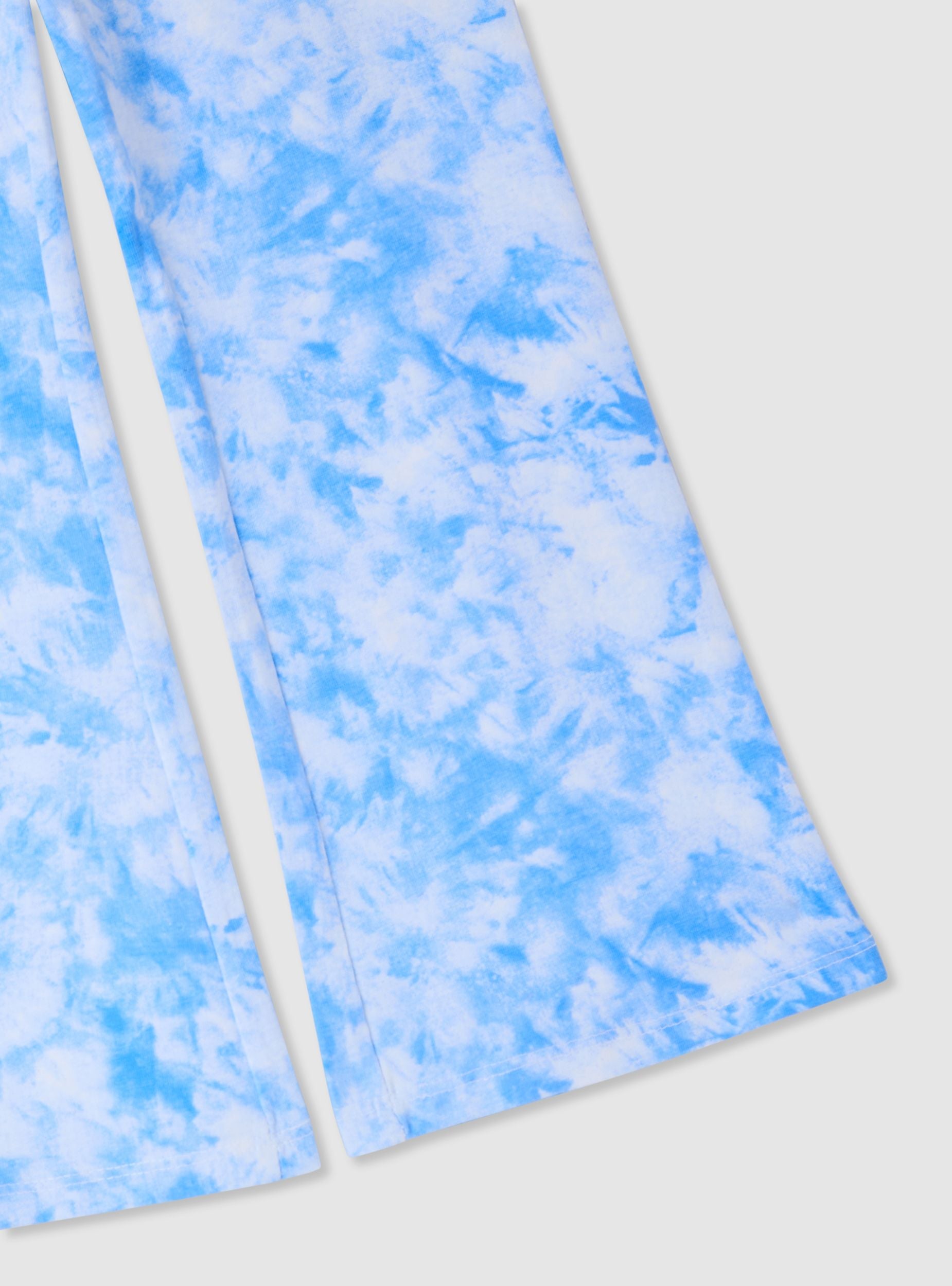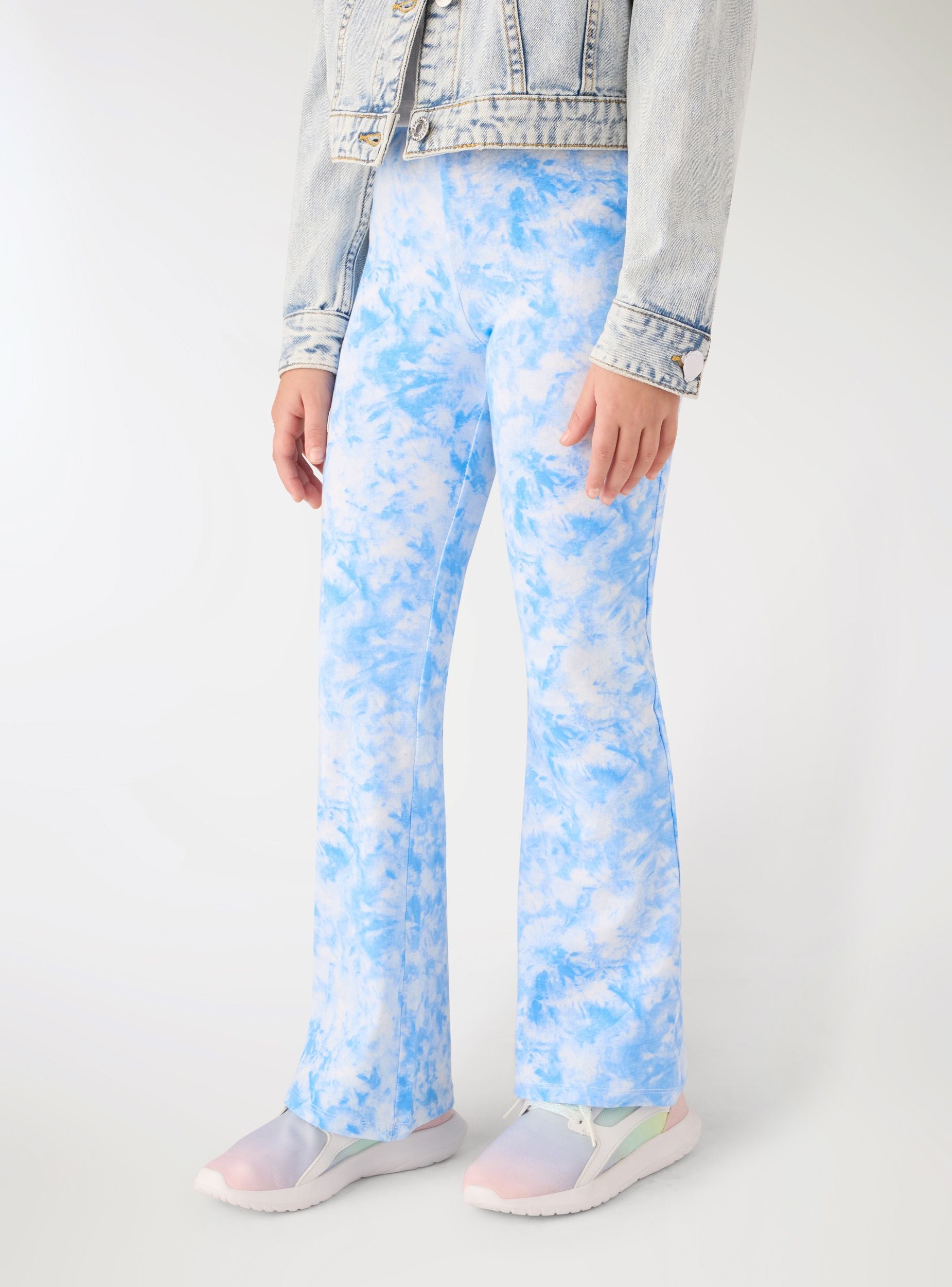 Mädchenleggings mit Tie-Dye-Muster und Schlaghose. Bund mit Gummizug für eine bequeme Passform. Passt zu Oversize-Sweatshirts, T-Shirts oder Cardigans für Alltags- und Freizeitlooks. Ideal für trendige Outfits mit Sneakern oder Stiefeletten.Details