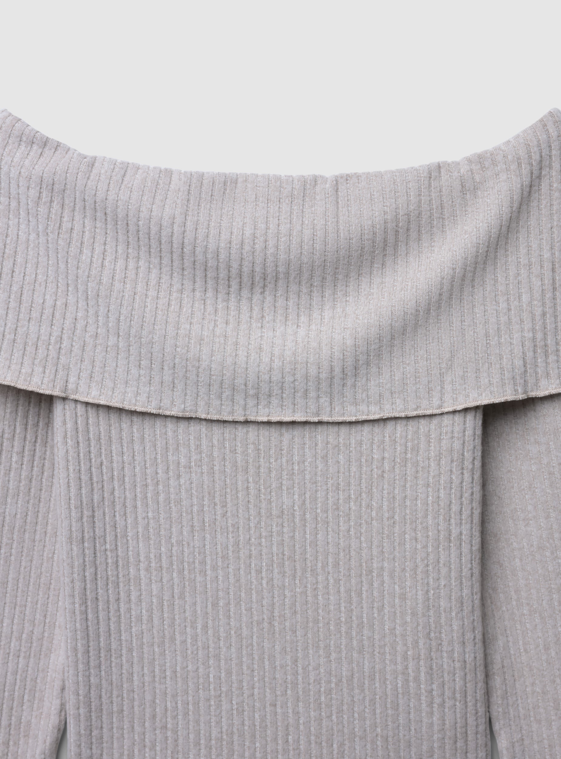 Damenlangarmshirt mit Carmenausschnitt. Perfekt für einen lässigen und modernen Look zeichnet sich dieses Rippstrickshirt durch seinen vielseitigen Stil und bequemen Sitz aus. Ideal zum Kombinieren mit Jeans oder Röcken, passt es zu verschiedenen Anlässen, von der Freizeit bis zu informellen Treffen. Das einfarbige Design macht es einfach, es mit anderen Kleidungsstücken zu kombinieren.Details