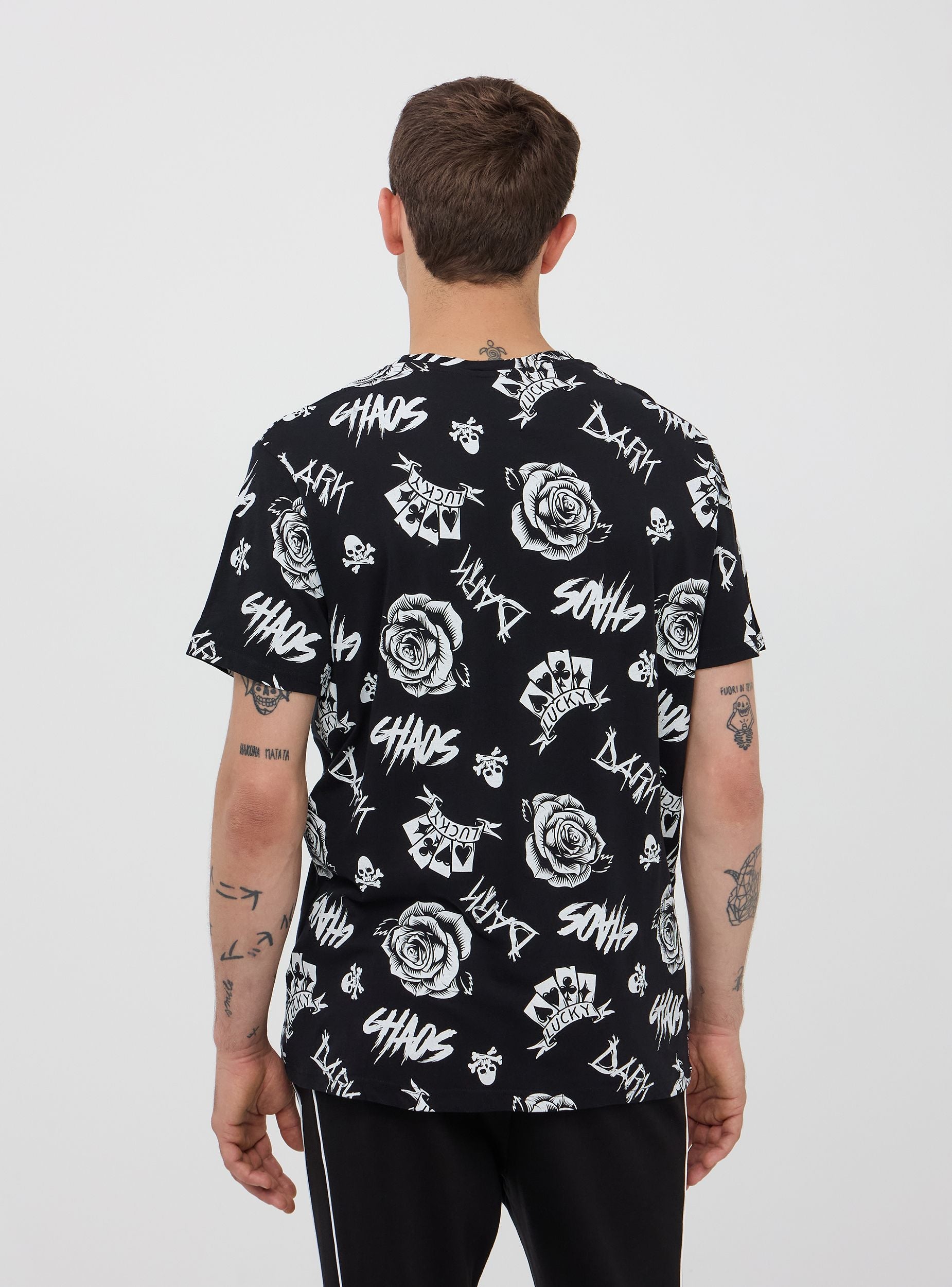Herren T-Shirt aus Baumwolljersey mit Allover-Urban-Print. Rundhals-Modell mit kurzen Ärmeln. Reguläre Passform.Details