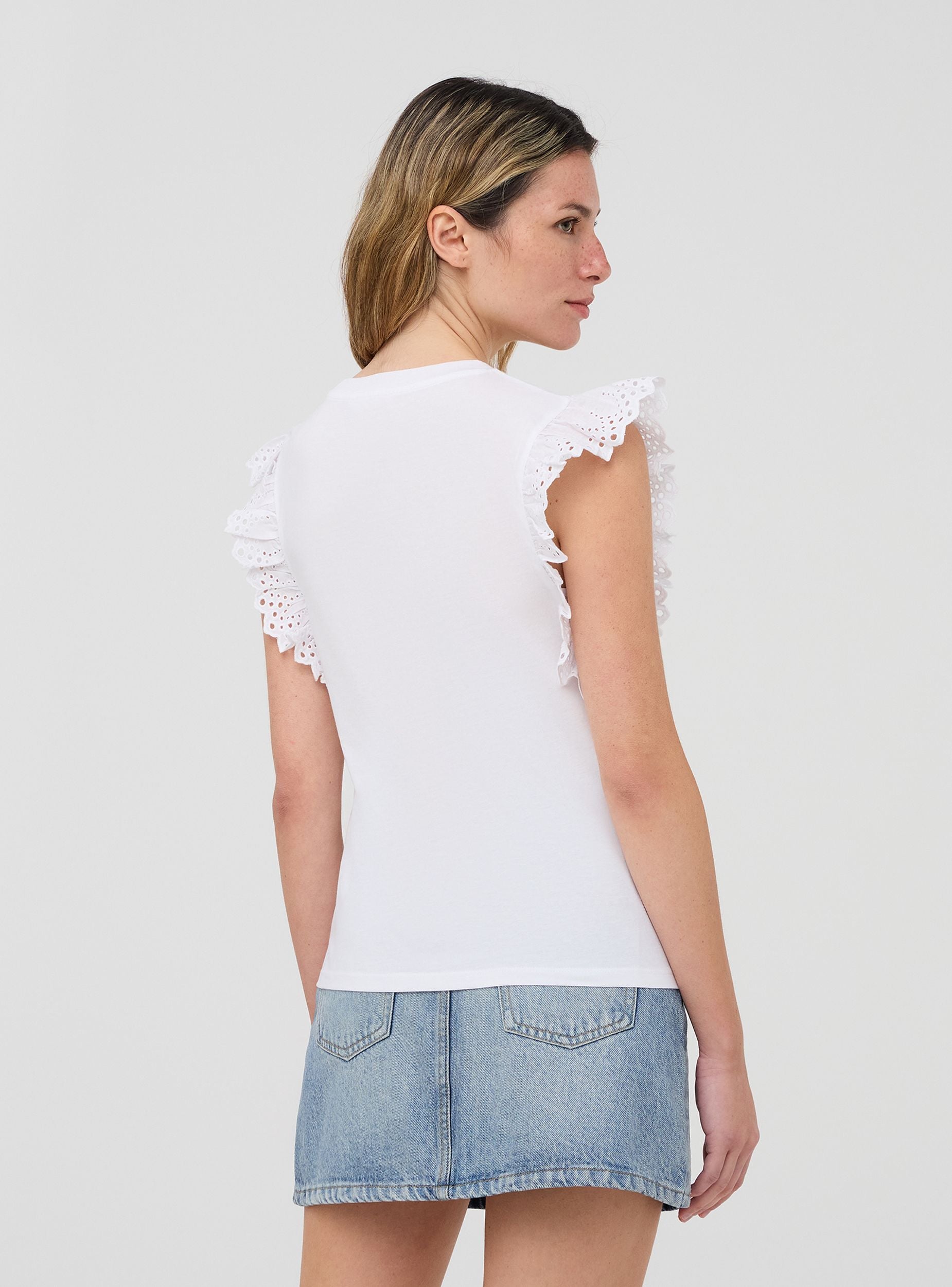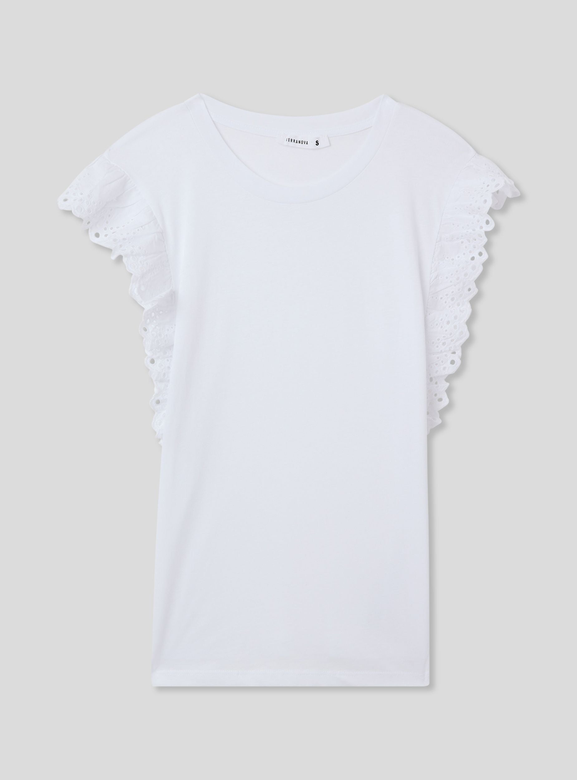 Damen-T-Shirt in einfarbigem Design mit Flügelärmeln. Dieses Modell bietet einen femininen und eleganten Stil, perfekt, um einem lässigen Look einen Hauch von Eleganz zu verleihen. Ideal für die Freizeit oder informelle Anlässe.Details
