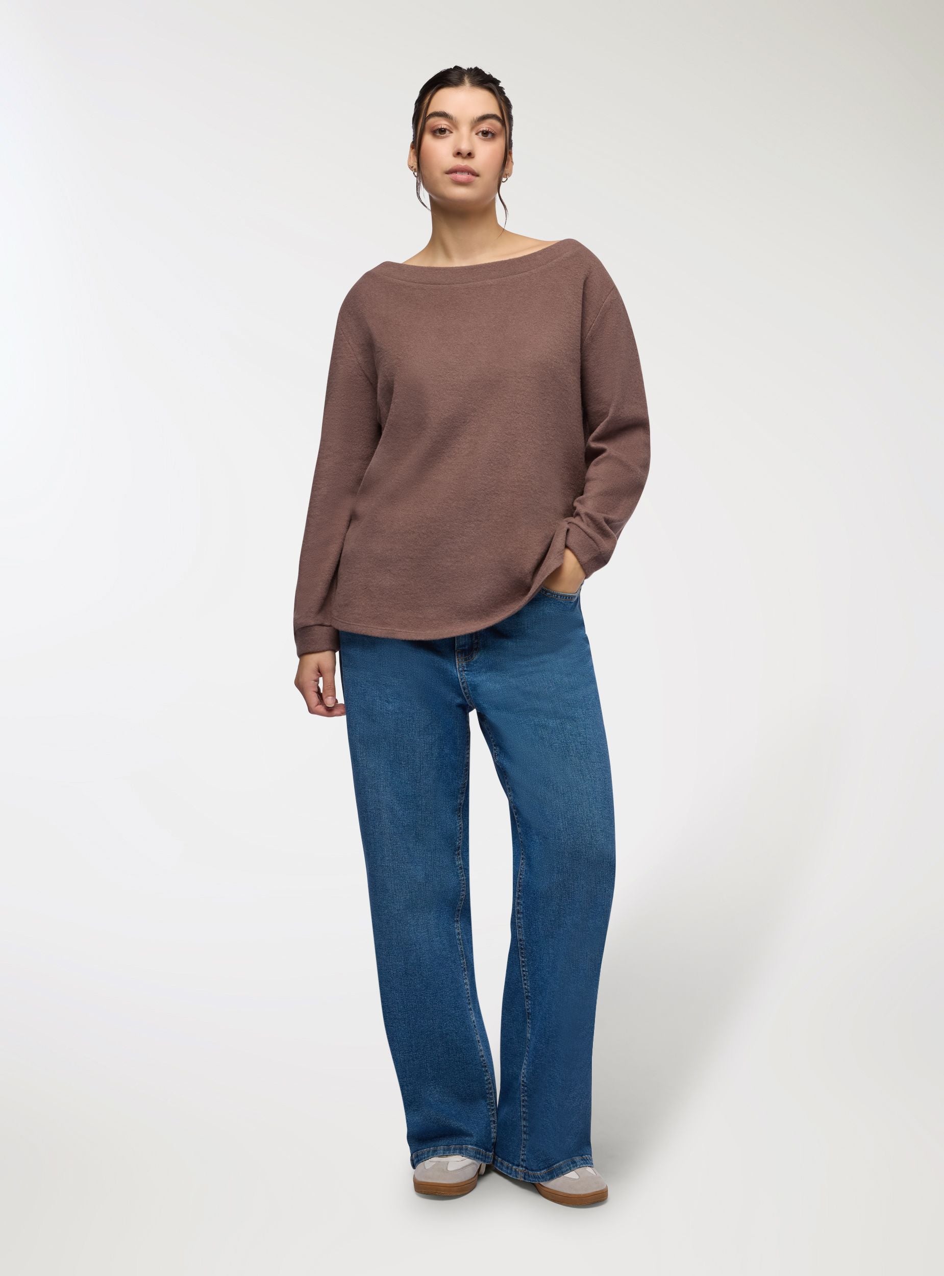 Langärmliges Damen-T-Shirt mit einfarbigem Design, das es vielseitig kombinierbar macht. Die bequeme Passform und der U-Boot-Ausschnitt verleihen einen schlichten Look, der für verschiedene Anlässe geeignet ist, von der Freizeit bis zu informellen Tagen. Perfekt zum Tragen mit Jeans oder Hosen, ist es ein unverzichtbares Kleidungsstück für jede Frau.Details