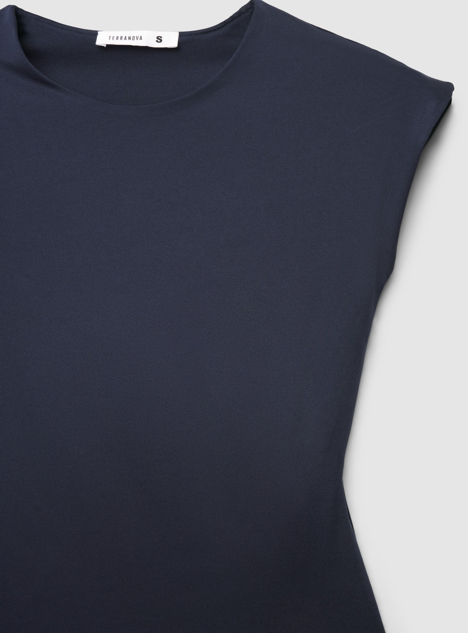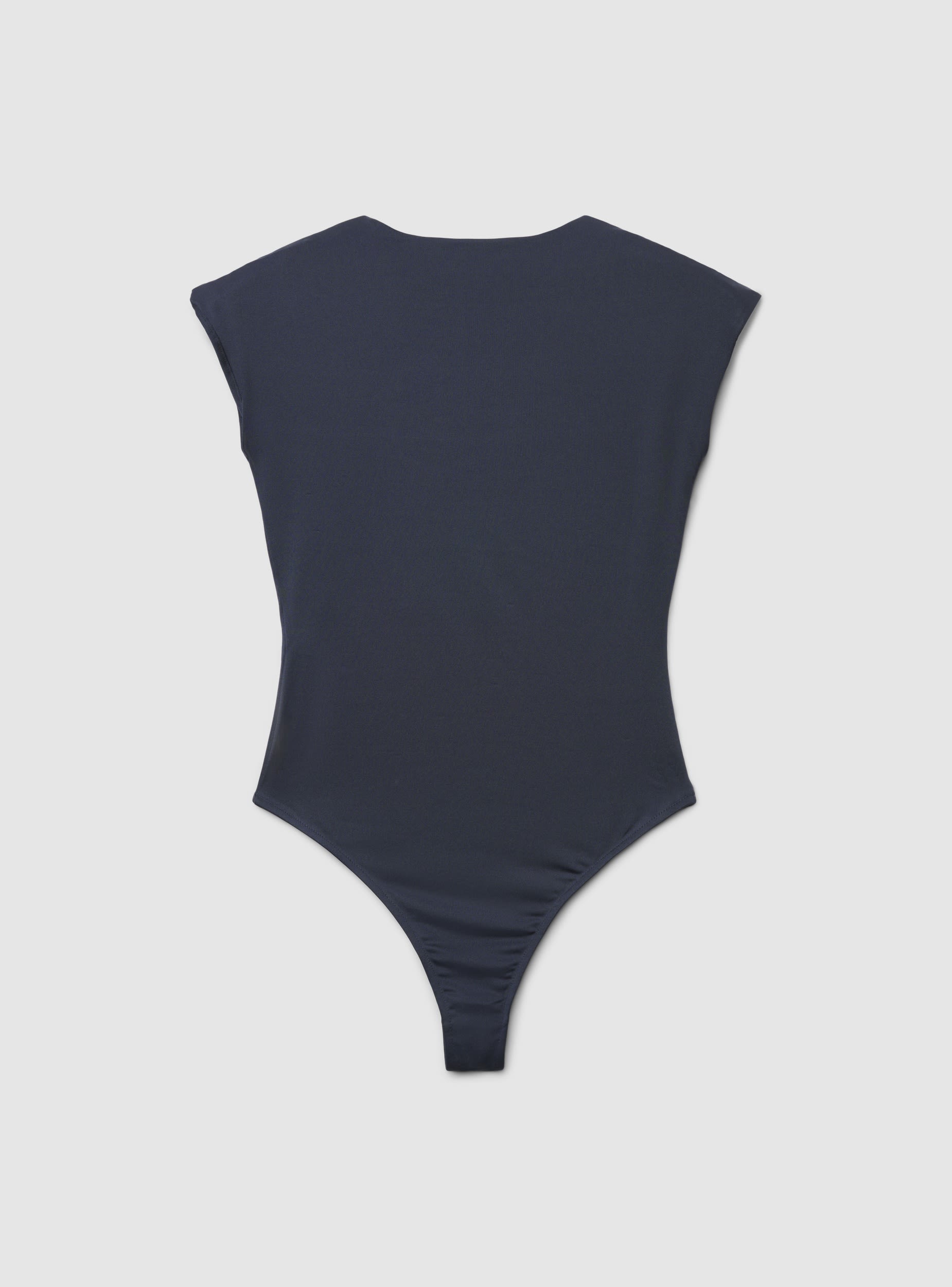 Damen-Body in Uni mit Rundhalsausschnitt und Flügelärmeln. Schlichte und figurbetonte Linie, die die Silhouette betont, ideal unter Blazern, Midirocken oder Jeans für gepflegte Looks vom Tag bis zum Abend. Praktische Druckknöpfe im Schritt für eine bequeme Passform. Perfekt, um Outfits in Lagen oder minimalistisch dank des schlichten Designs zu kreieren.Details