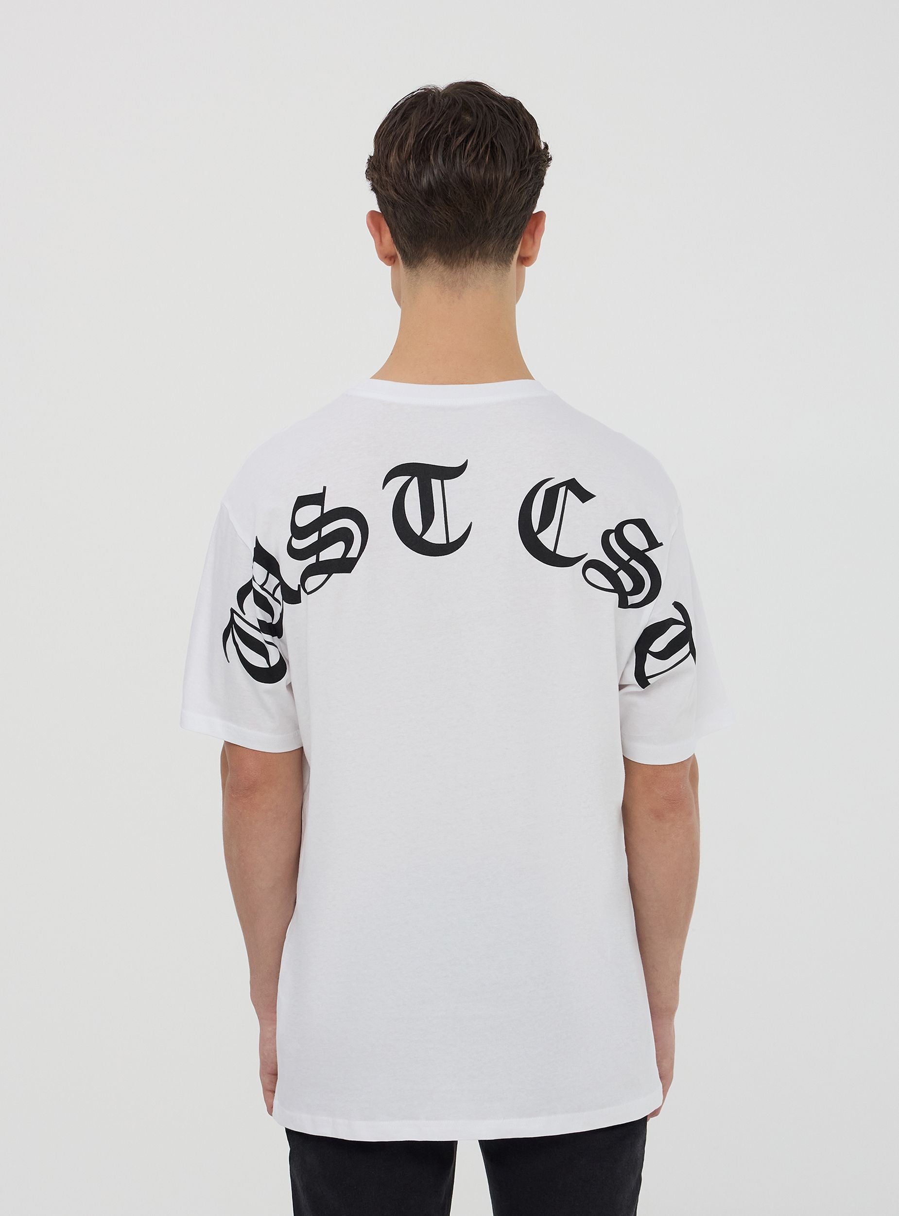 Herren-T-Shirt mit urbanem und trendigem Design, im Oversize-Schnitt für einen lässigen und modernen Look. Die kurzen Ärmel und der Rundhalsausschnitt sorgen für Komfort in jeder Gelegenheit. Der Gothic-Print auf Vorder- und Rückseite verleiht einen markanten Akzent. Perfekt kombinierbar mit Jeans oder Jogginghosen für ideale Streetwear-Outfits in der Freizeit, bei Abendveranstaltungen oder bei lässigen Events.Details