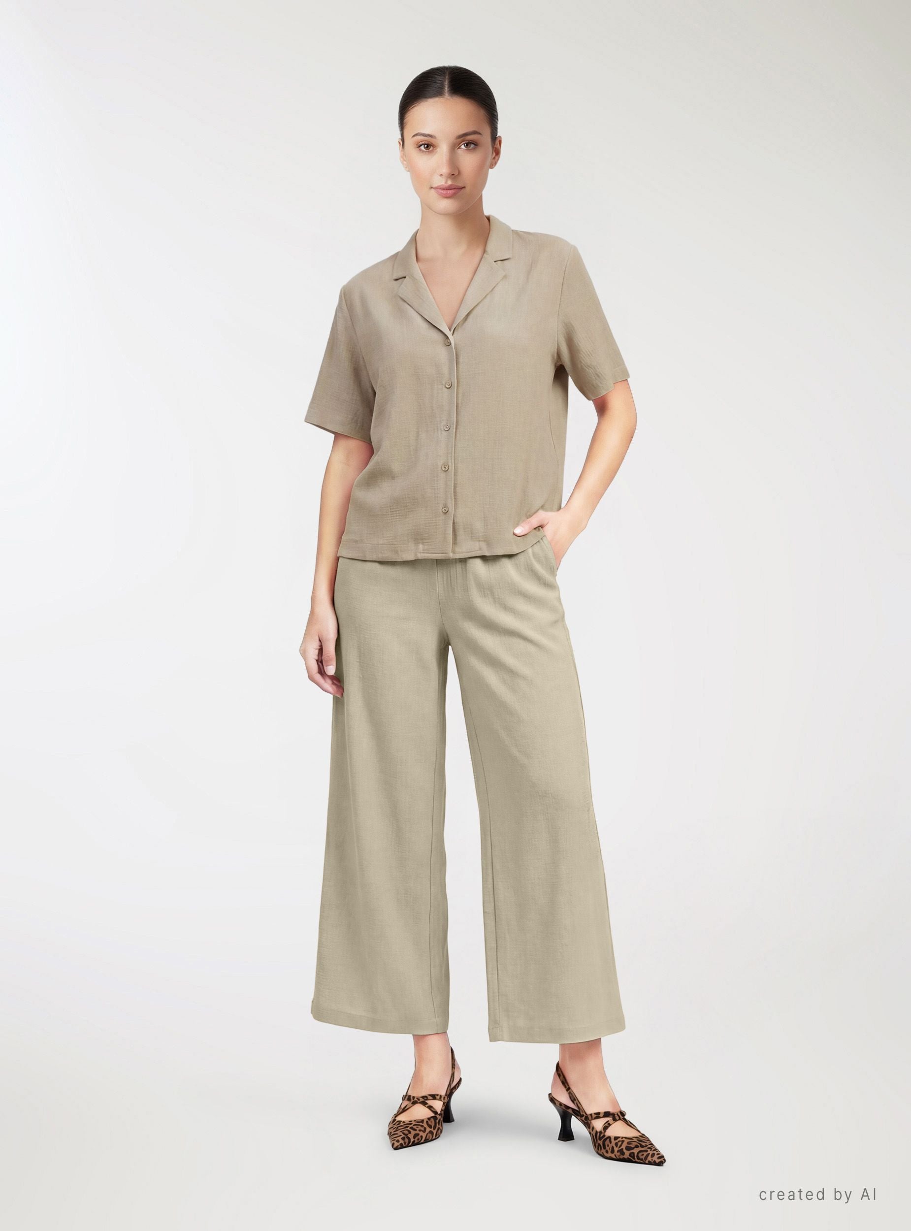 Unifarbene Palazzo-Cropped-Hose - Kaki