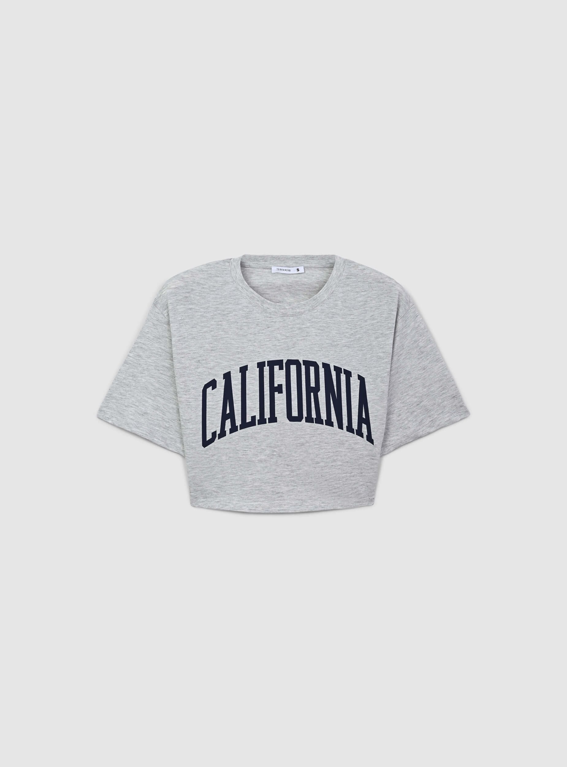 Damen-Crop-Top mit lässigem und entspanntem Stil. Die lockere Passform verleiht einen bequemen und modischen Look, ideal für Kombinationen mit High-Waist-Hosen oder Shorts. Der Rundhalsausschnitt und die kurzen Ärmel runden das Design ab und bieten einen essentiellen und praktischen Touch. Auf der Vorderseite befindet sich ein großer College-Druck, der eine sportliche und urbane Atmosphäre vermittelt, perfekt für alle, die dynamische Kleidungsstücke lieben. Dieses T-Shirt ist ideal, um junge und frische Looks zu kreieren.Details