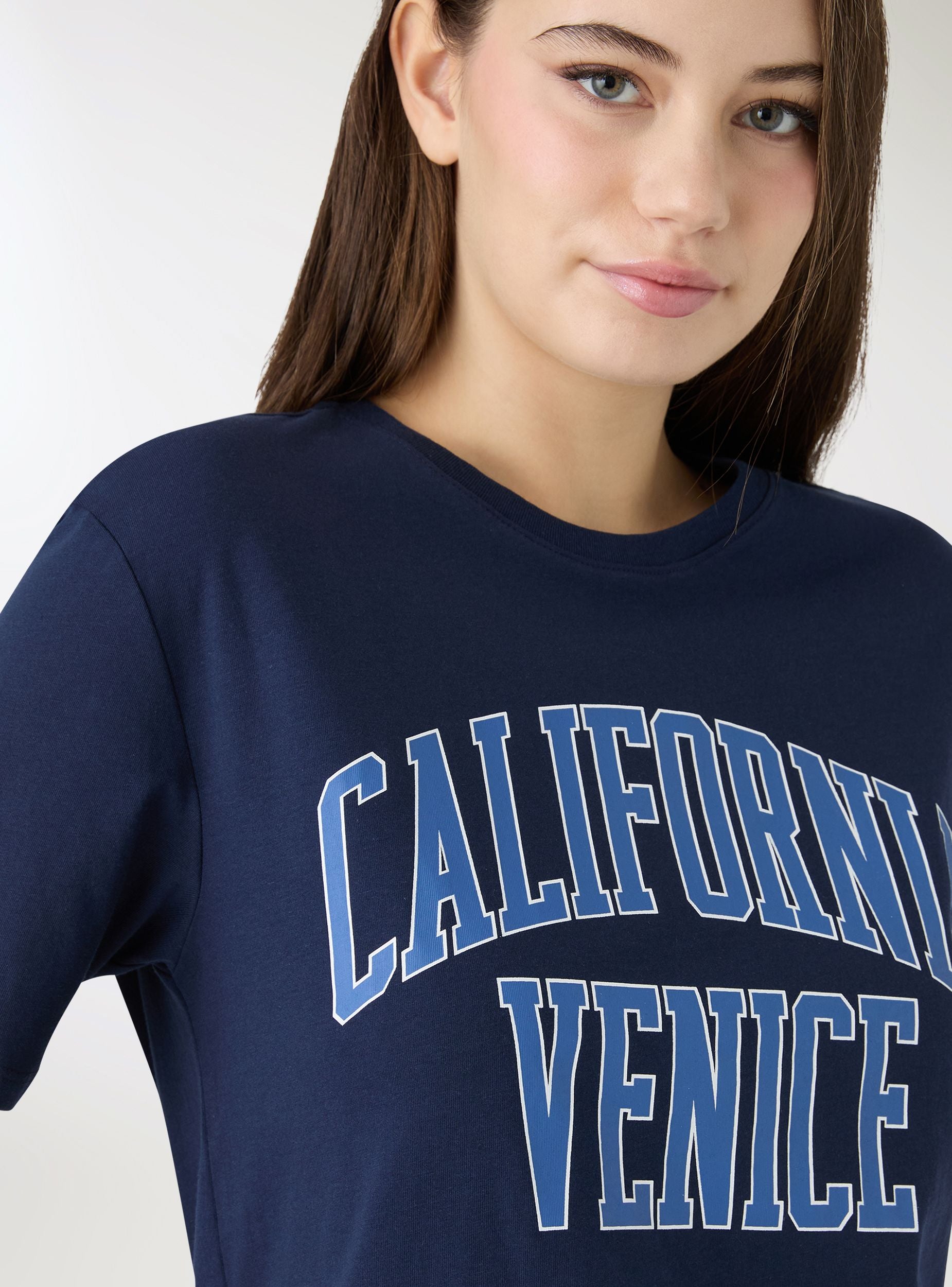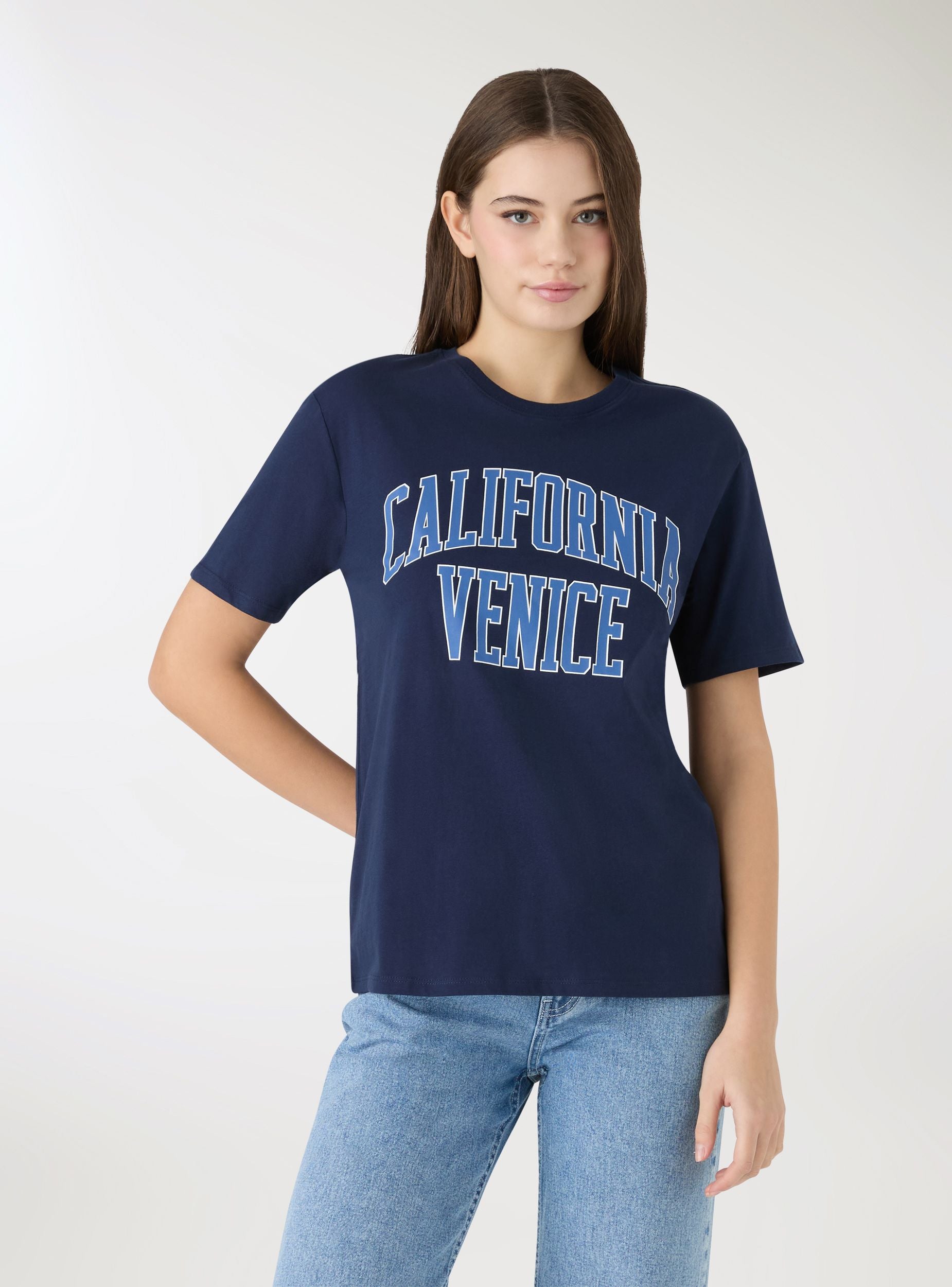 Weites T-Shirt mit College-Aufdruck - Mitternachtsblau