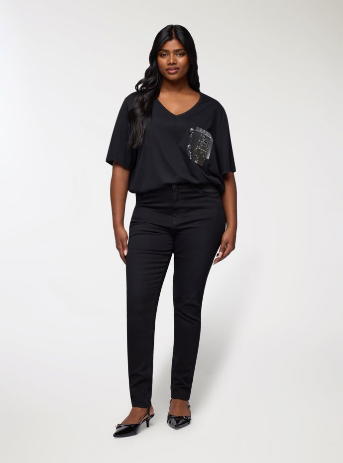Einfarbige Damenjeans mit Skinny-Passform, entworfen für alltagstaugliche Looks mit urbanem Touch. Langes Modell mit fünf Taschen und Gürtelschlaufen; Verschluss mit Knopf und Reißverschluss. Der enganliegende Schnitt betont die Silhouette und lässt sich leicht mit T-Shirts, Hemden oder Blazern kombinieren. Perfekt zu Sneakern für den Tag oder Stiefeletten für den Abend.
