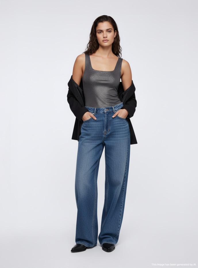 Damen-Top mit glänzendem Effekt, das einen glamourösen und raffinierten Touch verleiht. Das Design mit weitem Ausschnitt betont die Silhouette und macht es perfekt für elegante Abende oder besondere Anlässe. Lässt sich leicht mit High-Waist-Hosen oder engen Röcken kombinieren, ideal auch unter einer Jacke. Ein essentielles Kleidungsstück, um in jeder Gelegenheit stilvoll zu glänzen.