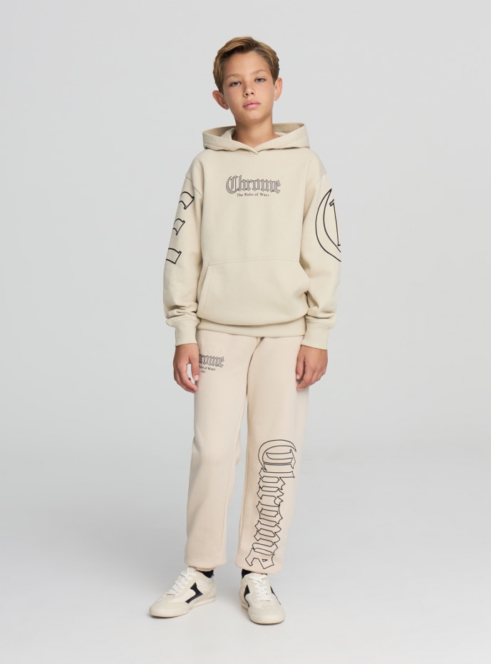 Kapuzensweatshirt mit gotischem Aufdruck Perlweiß
