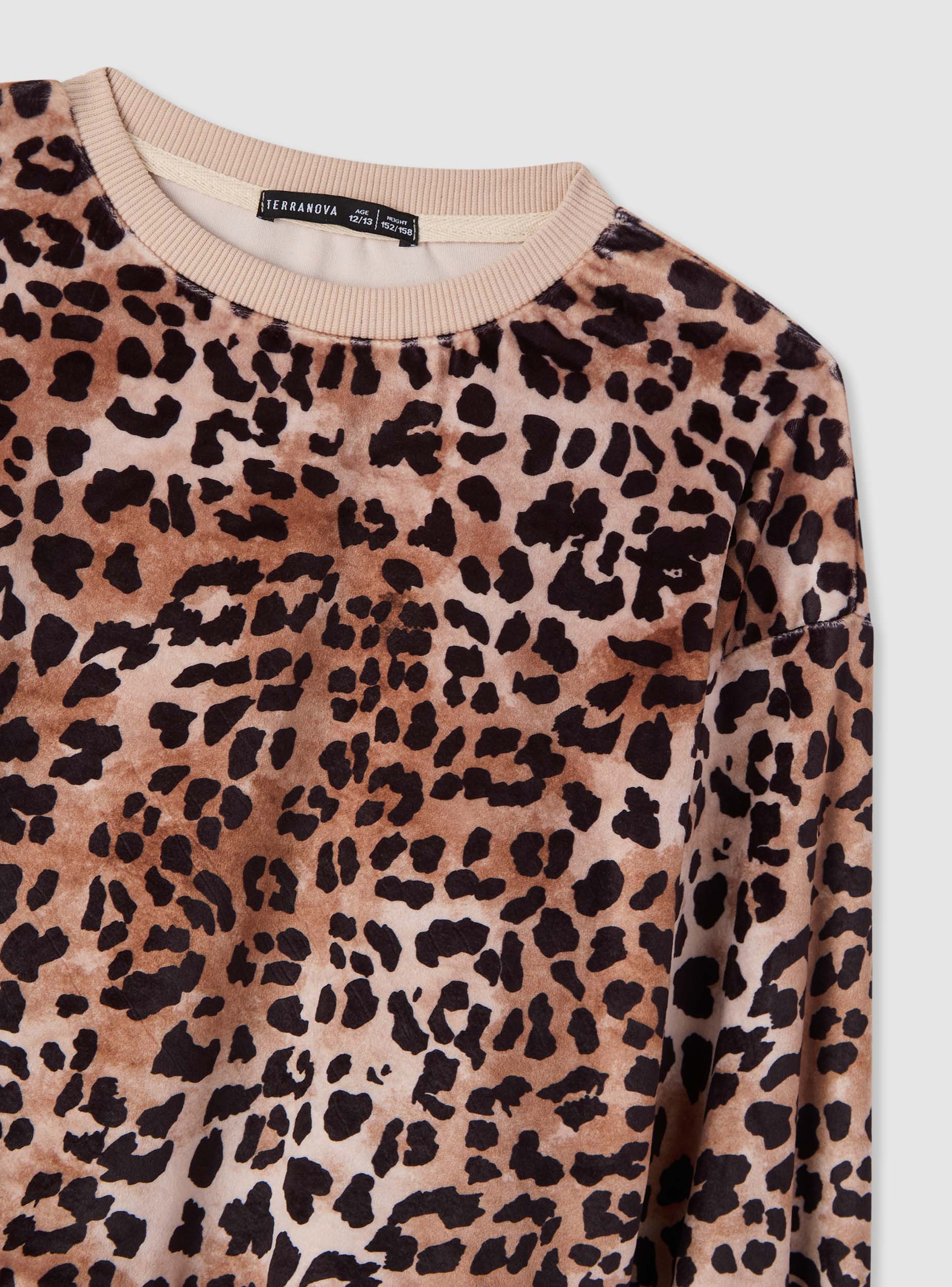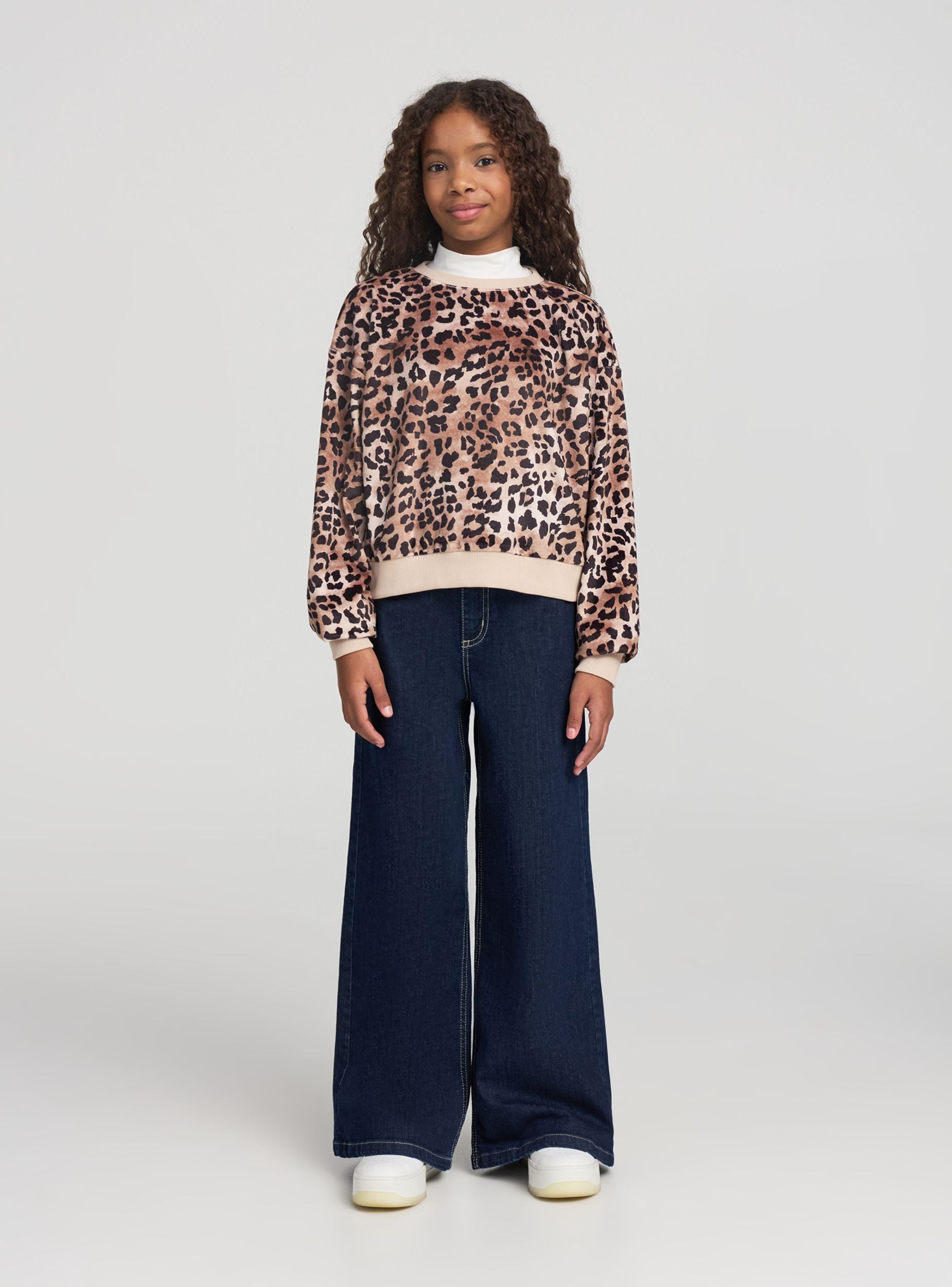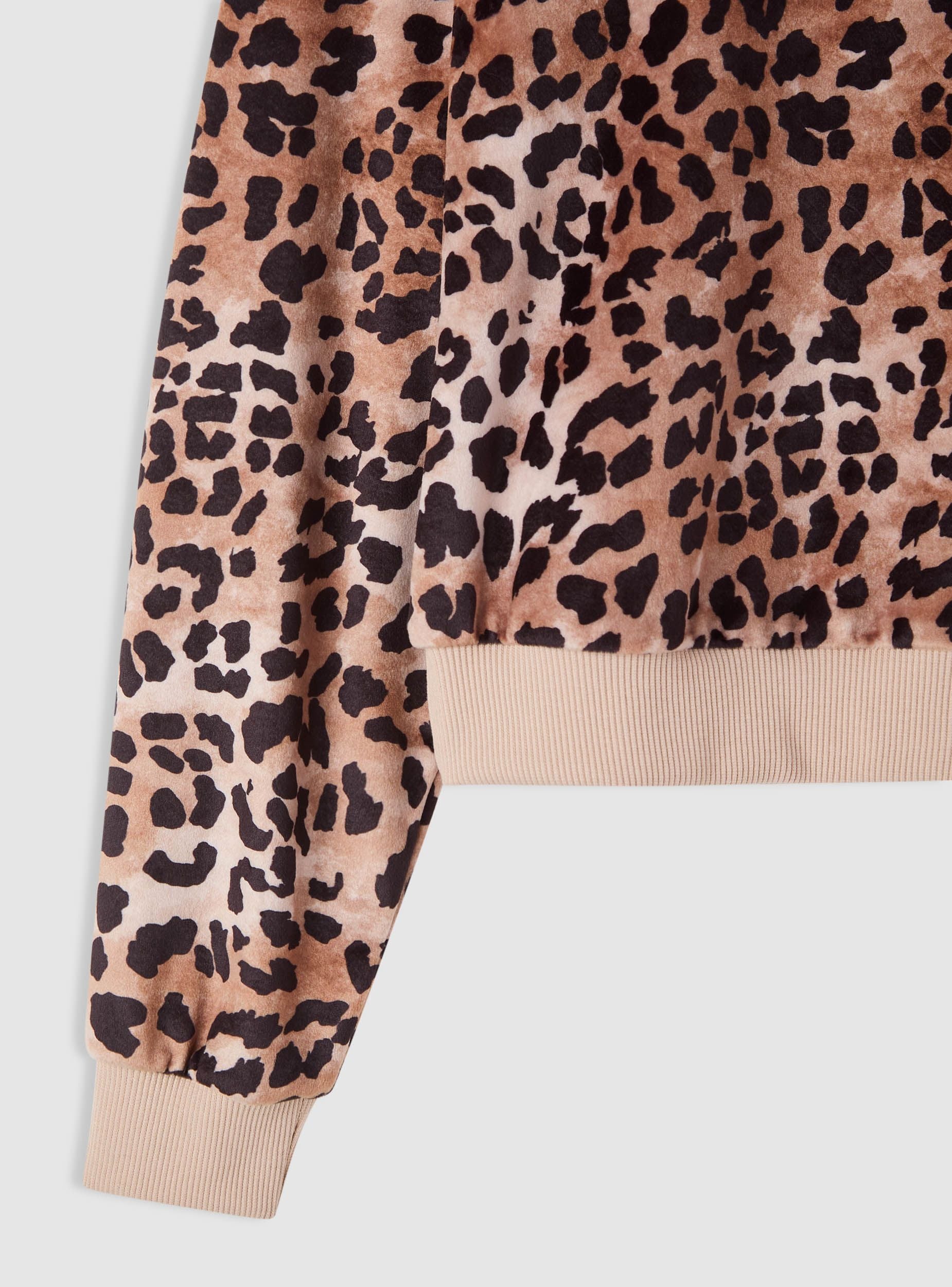 Girls' sweatshirt with animal print, crew neck, and long sleeves. Crop style with ribbed cuffs and hem for a comfortable fit. Without hood or zip, it is perfect for school or leisure time and pairs easily with jeans or shorts for a trendy and comfortable look. Heavyweight fabric.Details