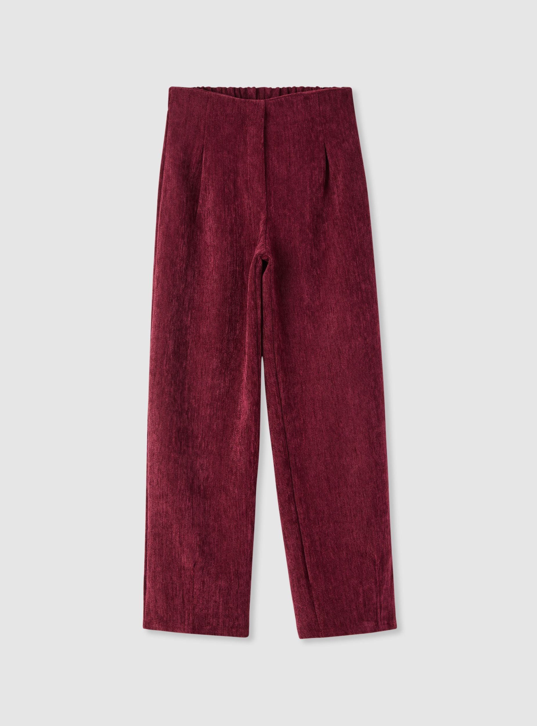 Plain long trousers for girls with an elasticated waistband for everyday comfort. The straight cut promotes freedom of movement and pairs easily with t-shirts and sweatshirts for school or leisure. The front pleats add a neat touch. Ideal with trainers or ankle boots for versatile looks. Heavy fabric.Details