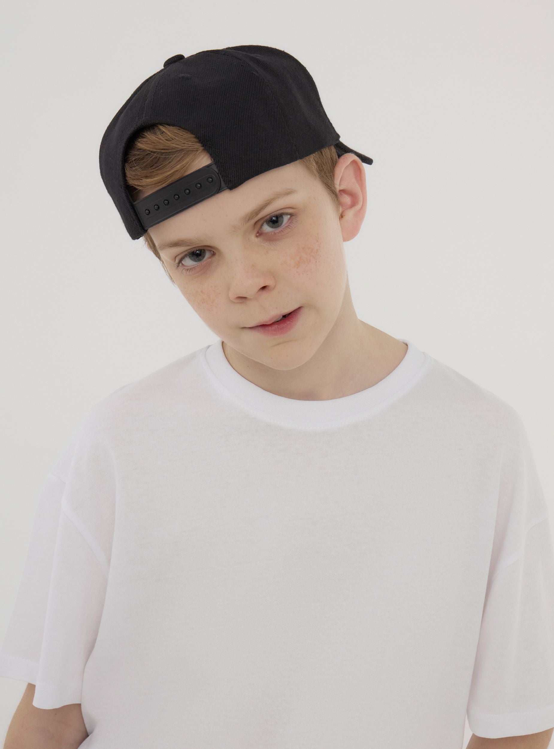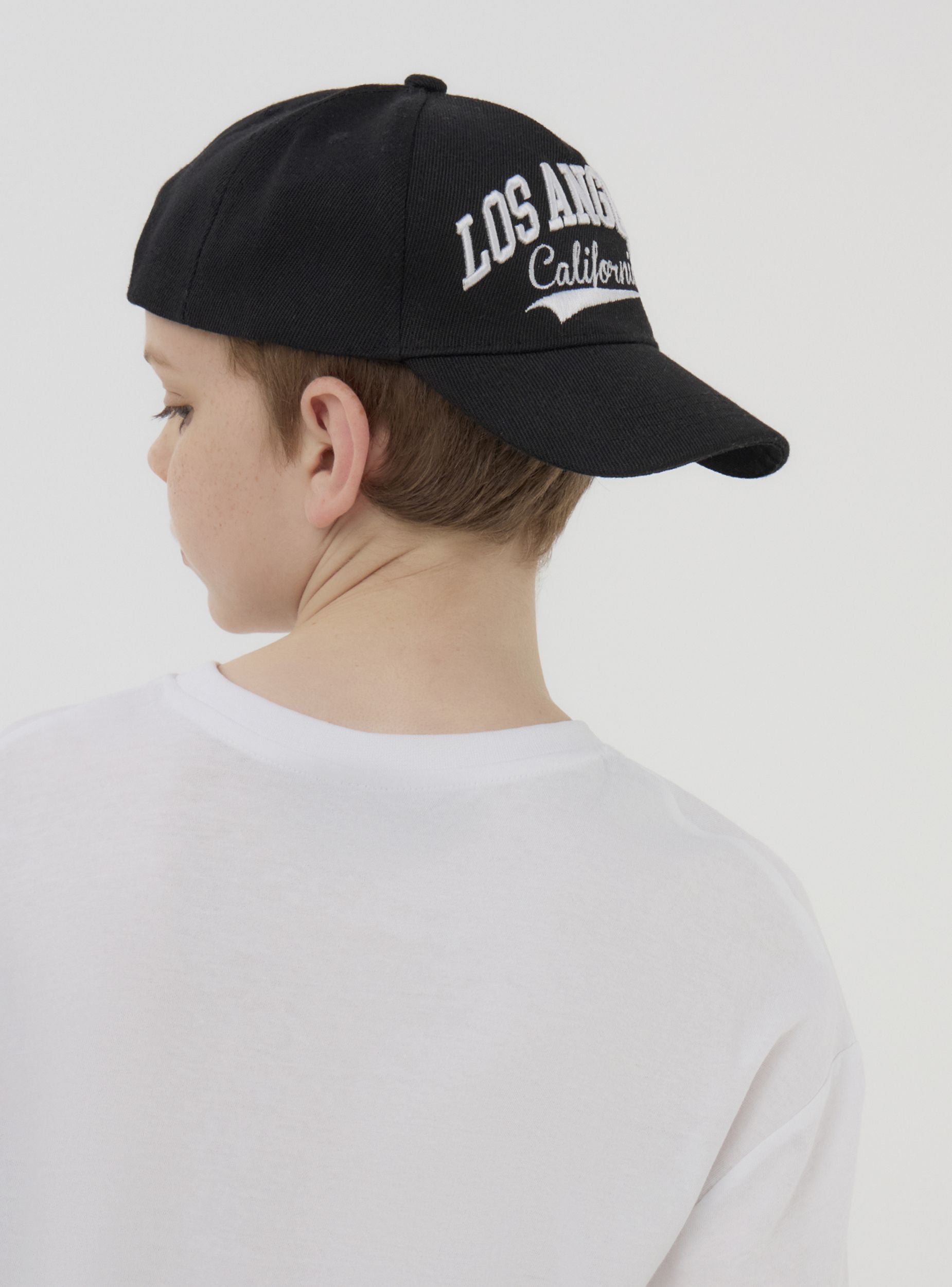 Children's baseball cap with a visor and embroidered writing on the front, giving it a sporty and trendy look. The adjustable closure at the back allows it to be fitted to the desired size, making it comfortable and versatile for outdoor days or daily activities.