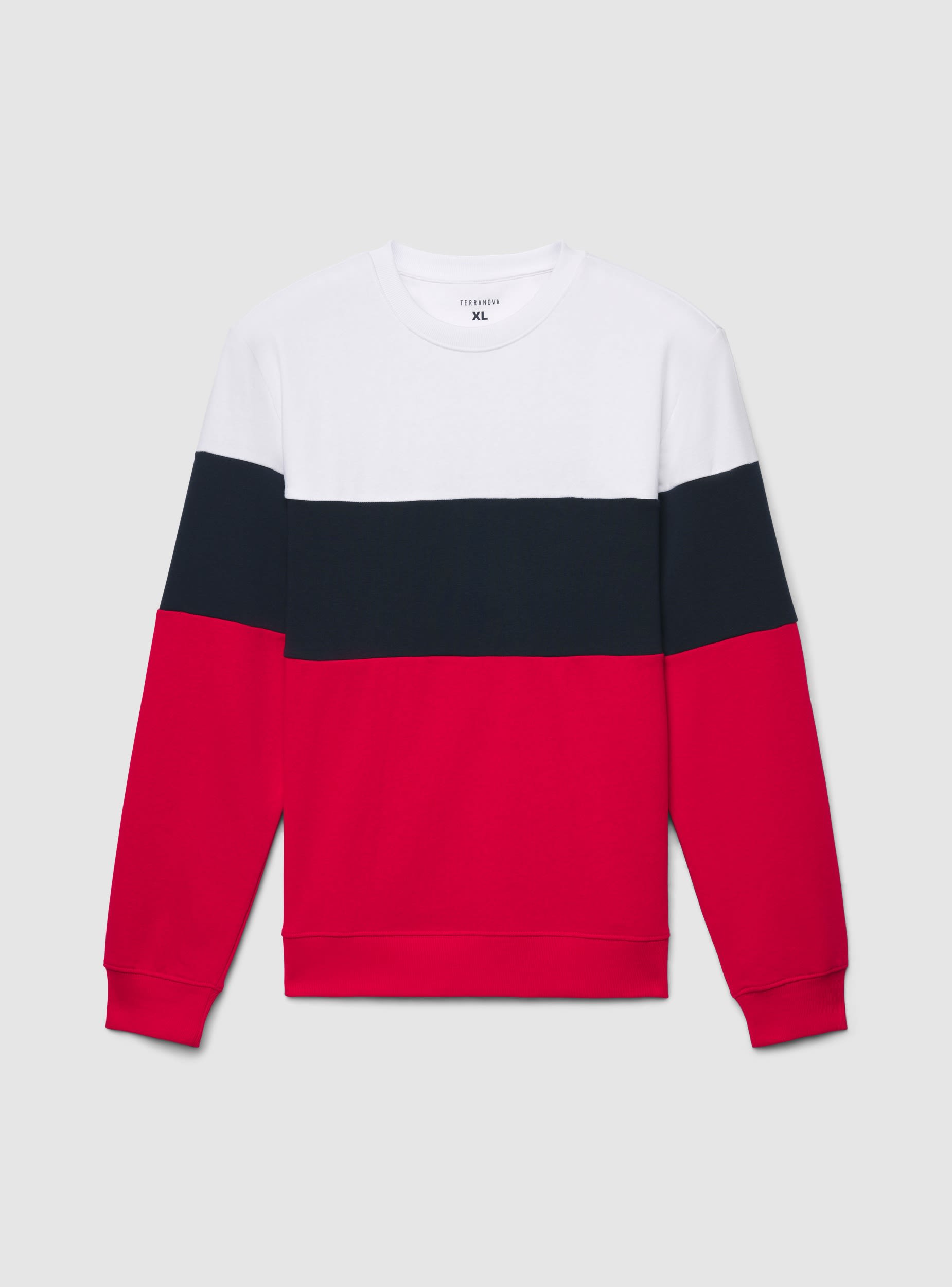 Lightweight men's sweatshirt without hood or zip, featuring a block colour pattern. This model has a ribbed crew neck, long sleeves, and elasticated cuffs. The hem is ribbed for a comfortable fit. Ideal for leisure time or casual looks, it pairs easily with jeans or jogger trousers and sneakers.Details