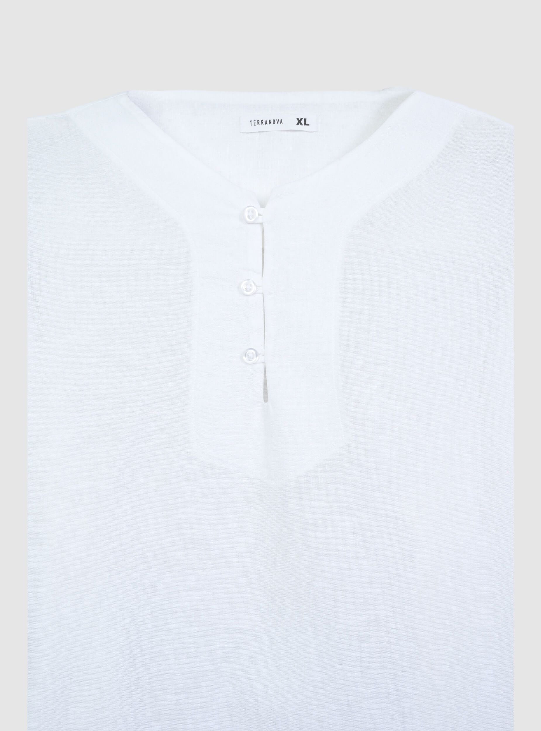 Men's shirt, kaftan style in solid cotton. Long sleeves, henley neckline and partial button closure. Perfect for a casual yet refined look, ideal for leisure time, evening outings or the mid-seasons. Easily pairs with jeans, chinos or cargo trousers for a versatile and modern outfit. The relaxed and tailored design ensures comfort and style on any occasion.Details
