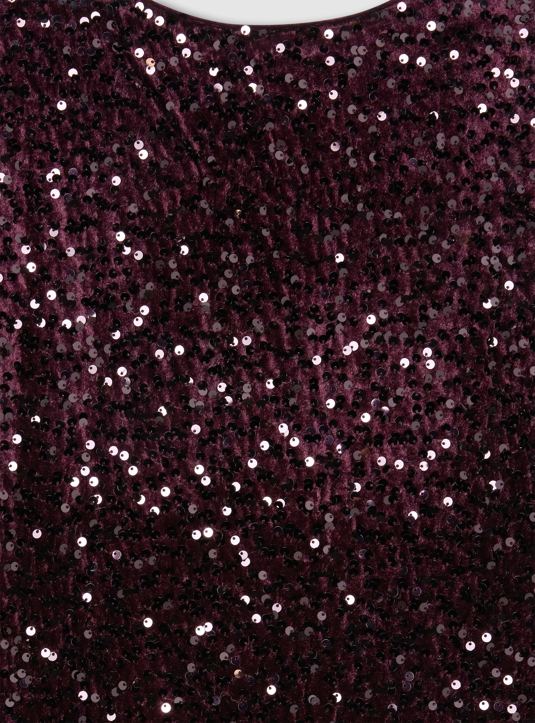Women's sequin dress, ideal for elegant evenings and special occasions. It features a round neckline and a fitted silhouette that enhances the figure. The long sleeves add a touch of sophistication, while the sparkling design makes it perfect for shining at any event. A versatile and glamorous piece for an unforgettable look.Details