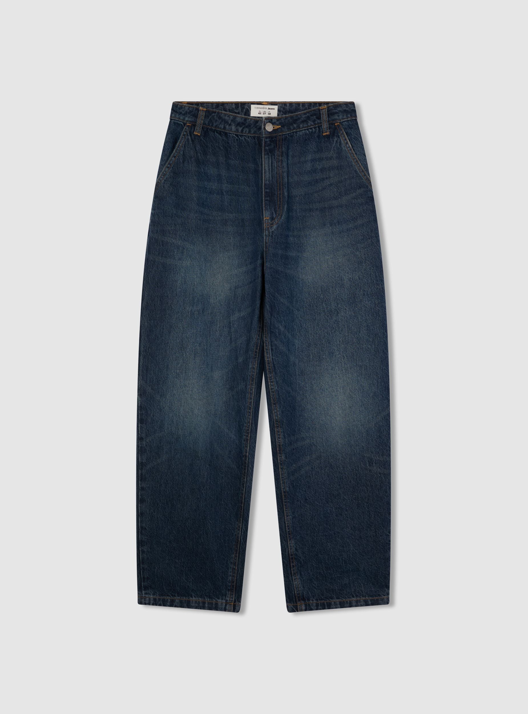 Women's jeans with a loose fit, ideal for a casual and modern look. Featuring a button and zip closure, they have functional front and back pockets. The plain design makes them versatile for pairing with t-shirts and sneakers, perfect for an everyday outfit. A comfortable and fashionable garment, suitable for various occasions.Details