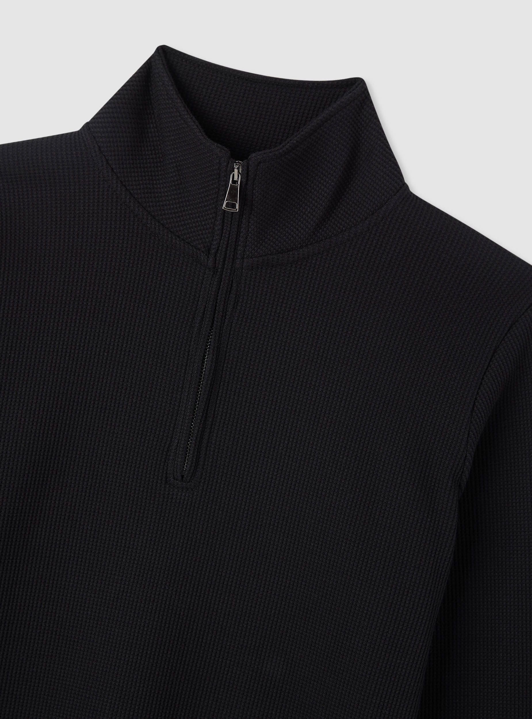 Men's t-shirt with a high collar and half front zip, in a solid colour. The micro-textured fabric provides structure and comfort, while the regular fit and long sleeves make it practical under jackets or sweatshirts. Ideal for casual or urban looks, it pairs well with jeans or chino trousers. Short zip closure and clean finishes for an essential and versatile design.Details