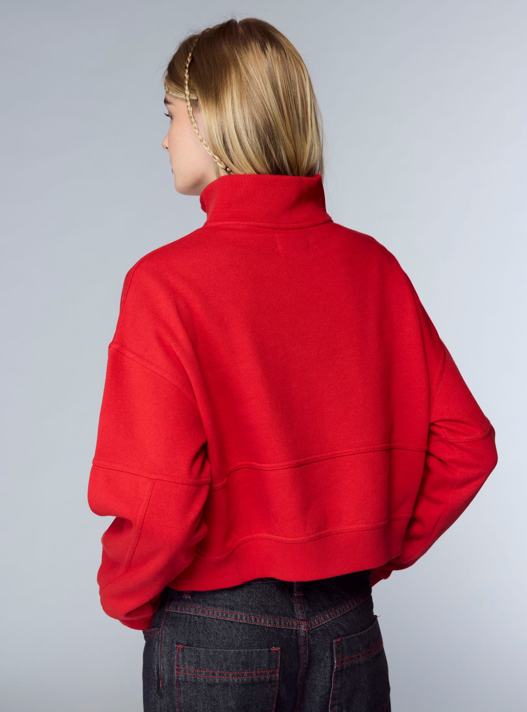 Women's heavy sweatshirt with a high ribbed collar and half zip front. The soft cut and ribbed finishes on the cuffs and hem ensure comfort and an optimal fit. Made from warm and durable fabric, it is perfect for winter. Ideal with jeans or leggings for a casual and versatile look. This item is part of the TRNPOPLAB project born from the collaboration with NABA Milan. Fashion design students have brought to life collections inspired by the coolest trends of the moment. And now they will see their creations come to life and reach your hands directly!Details