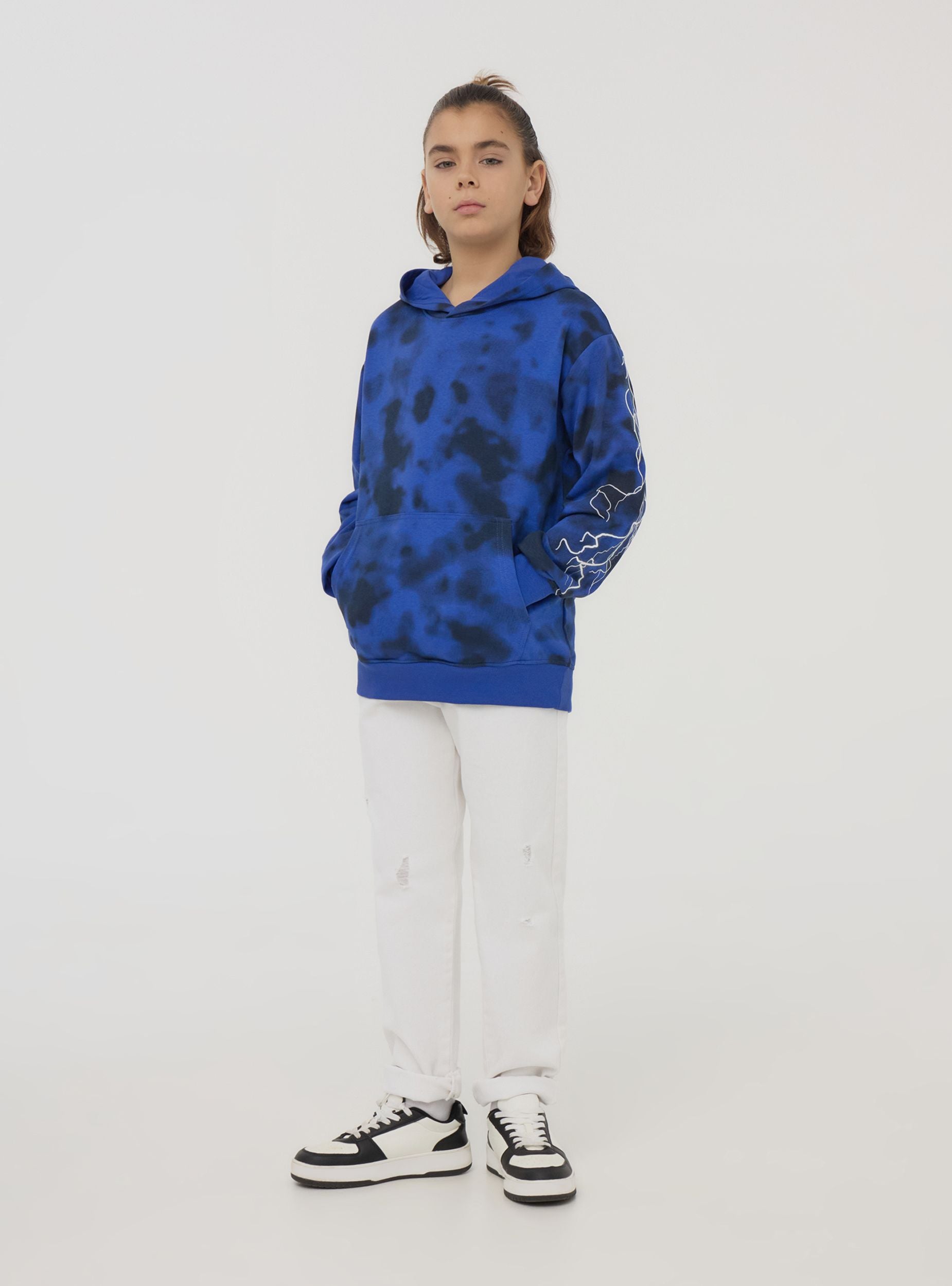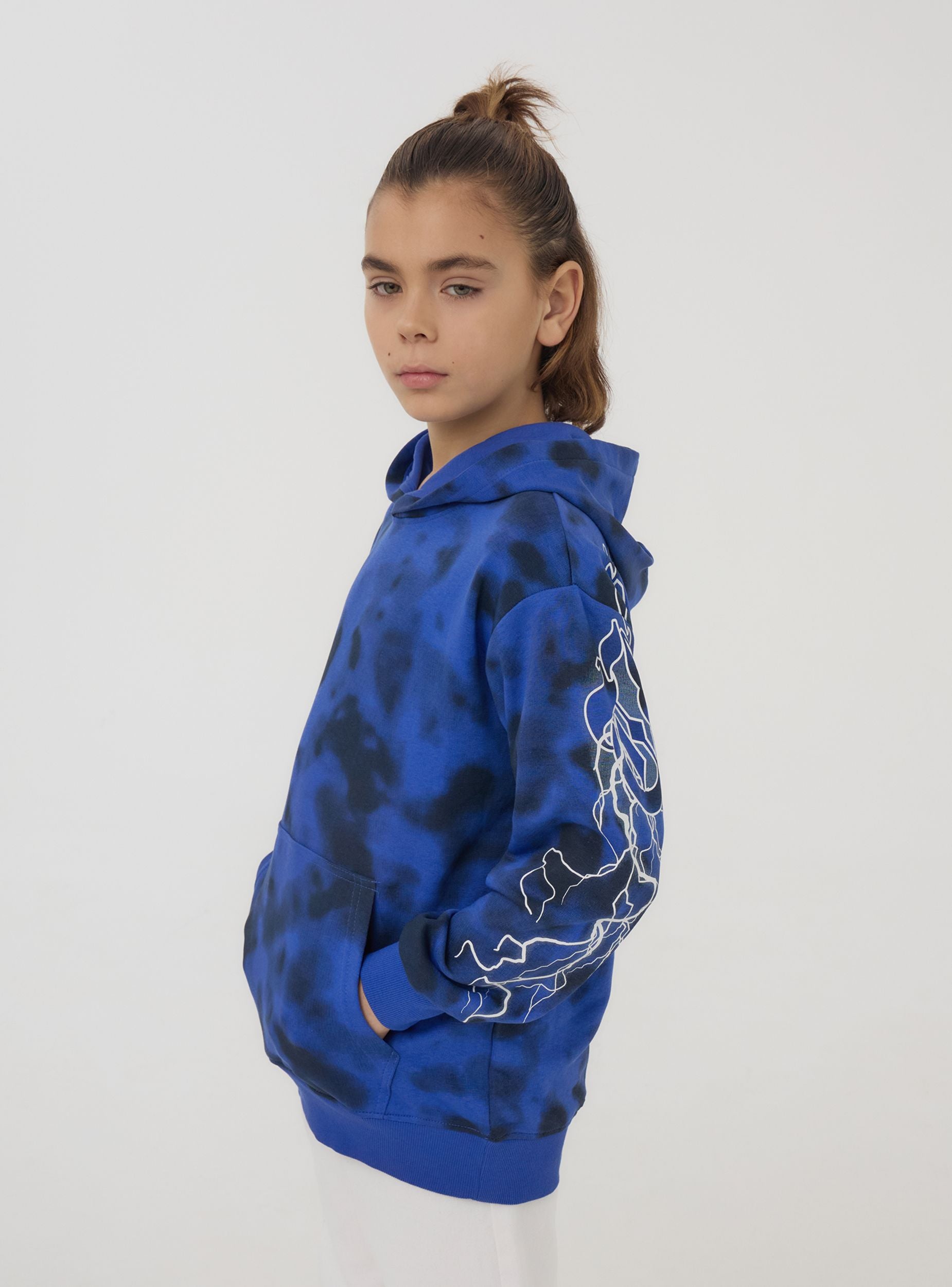 Hoodie with lightning bolts and Gothic lettering with hood - Bluette