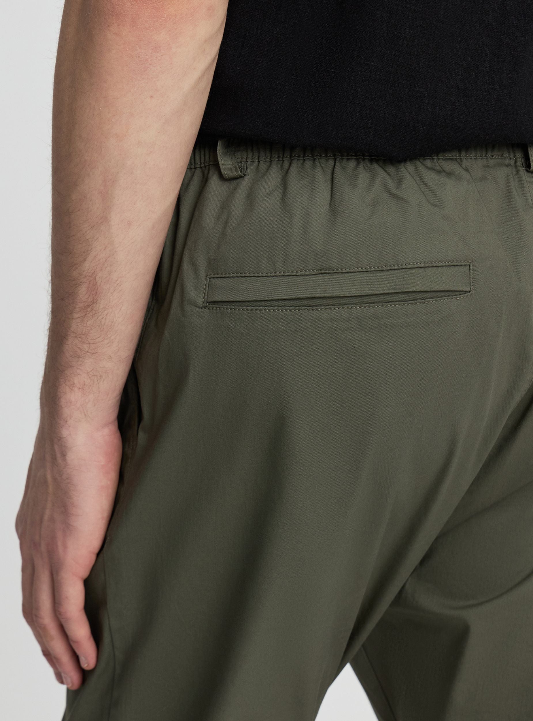 Men's long jogger-style trousers in a solid colour, ideal for casual and urban looks. Elasticated waistband with belt loops, button and zip closure for a comfortable fit. French side pockets and welt back pockets for essentials. Leg with elasticated cuff at the hem and regular fit, easy to pair with t-shirts and trainers.Details