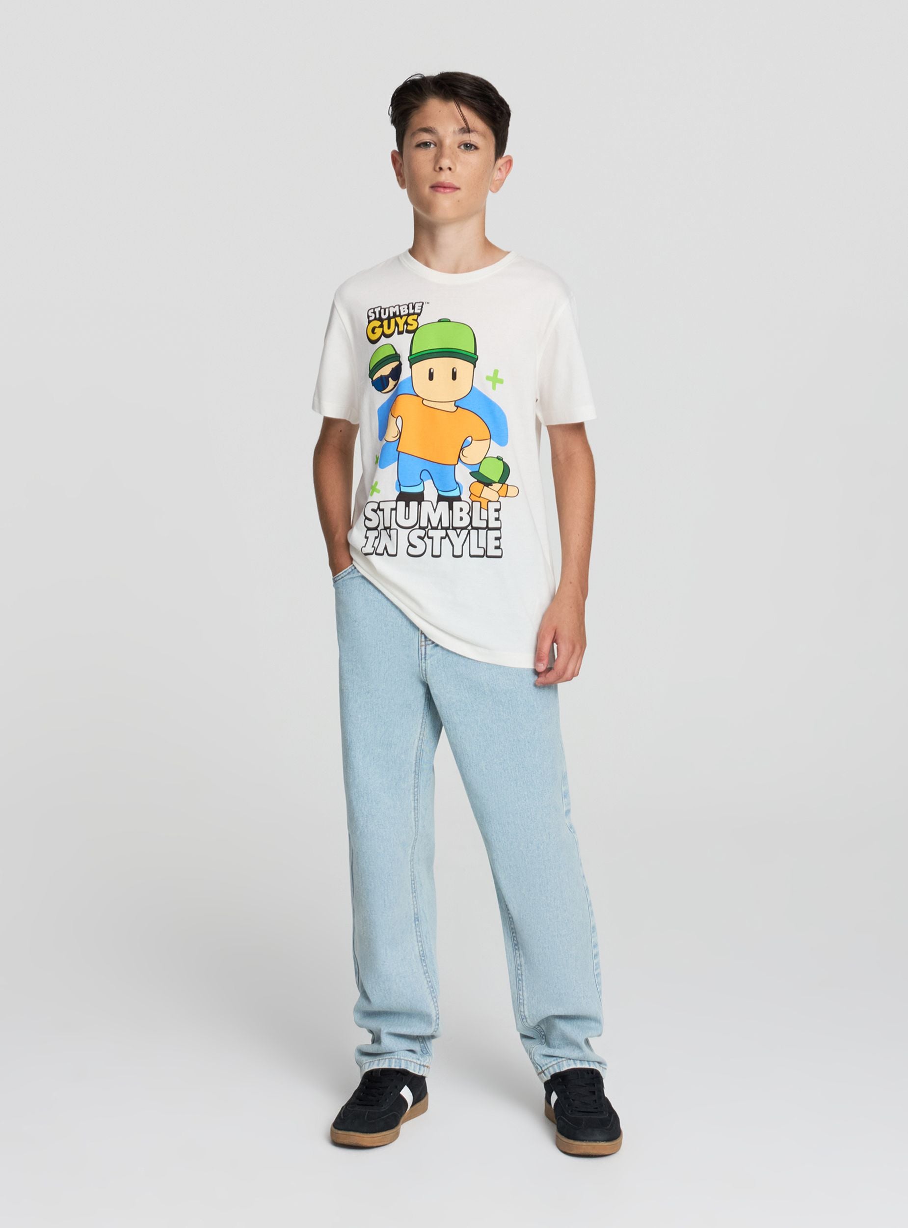 Children's jeans with a relaxed fit, ideal for a casual and comfortable look. They feature a button and zip closure, front and back pockets for practicality, and a solid colour design. Perfect for pairing with t-shirts and sweatshirts for leisure time or school. A versatile garment suitable for every occasion.Details