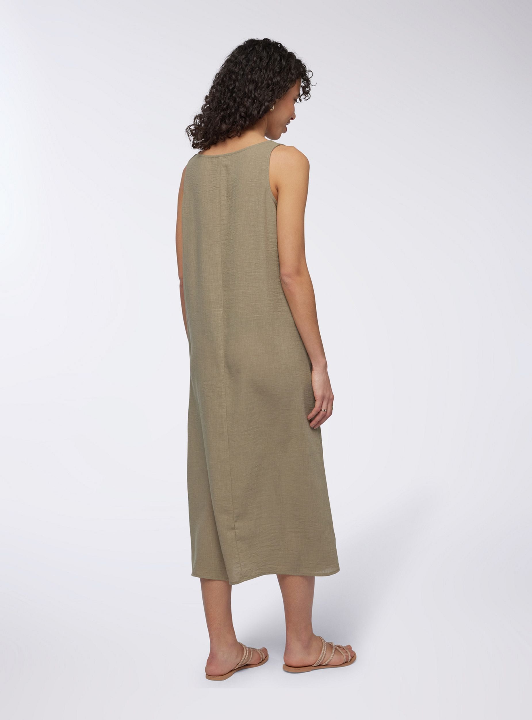 Long women's dress, characterised by a solid colour that enhances its simplicity and elegance. The design is essential, with a straight silhouette that falls softly along the body, providing a feeling of comfort and lightness. The wide straps add stability and a touch of understated style, while the maxi length gives a refined appearance, suitable for multiple occasions, from casual outings to more elegant events. This dress is ideal for those looking for a versatile and minimalist piece, easy to match and perfect for the summer season.Details