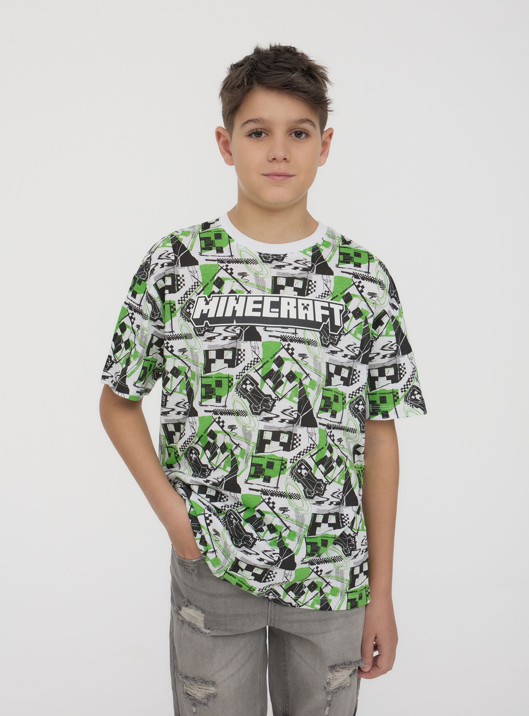 Perfect children's t-shirt for young Minecraft® enthusiasts, ideal for leisure time and daily activities. With short sleeves and a crew neck, it is enhanced by a vibrant print inspired by the universe of the famous video game. A comfortable and original piece that combines style and a passion for gaming.