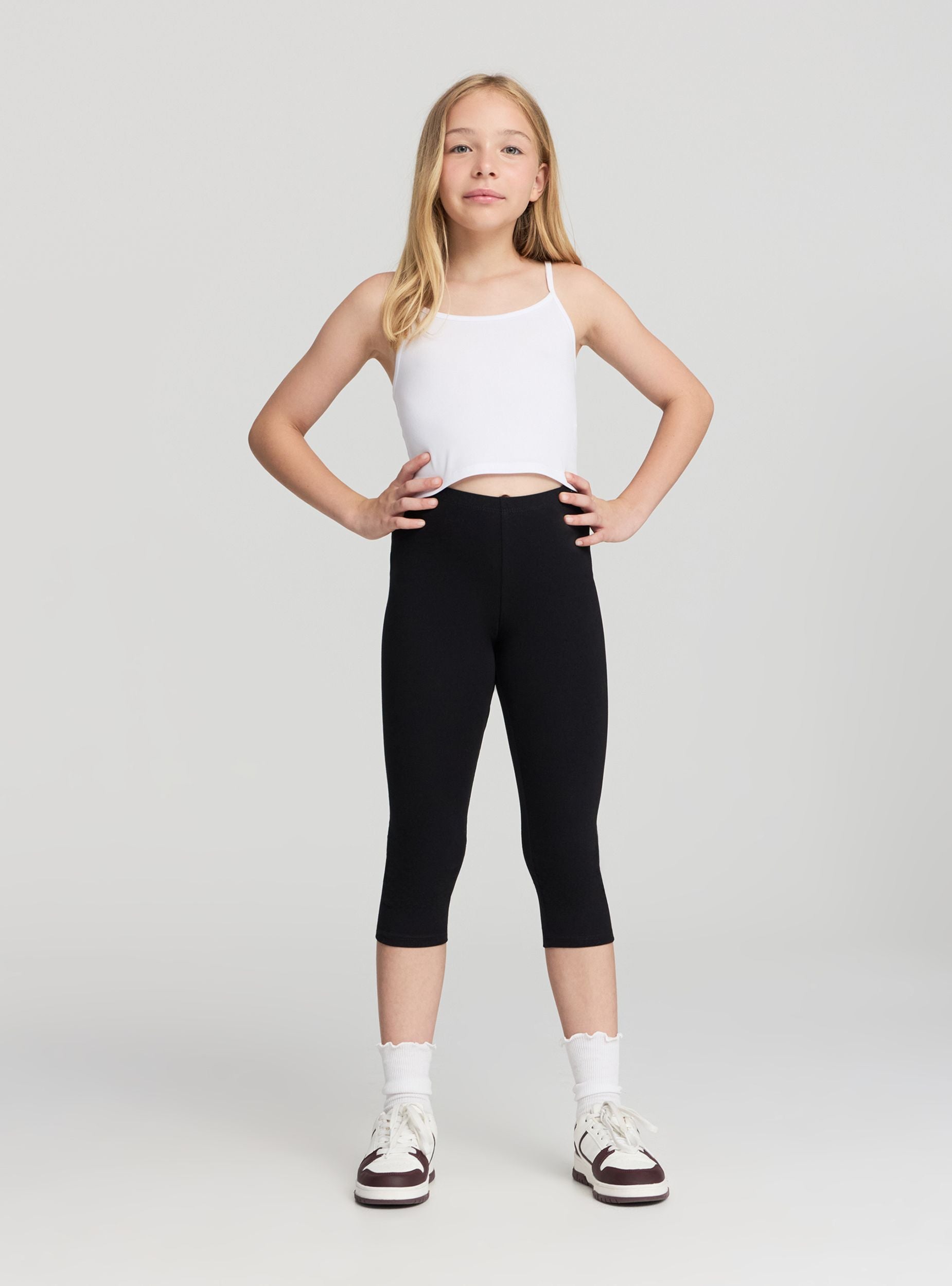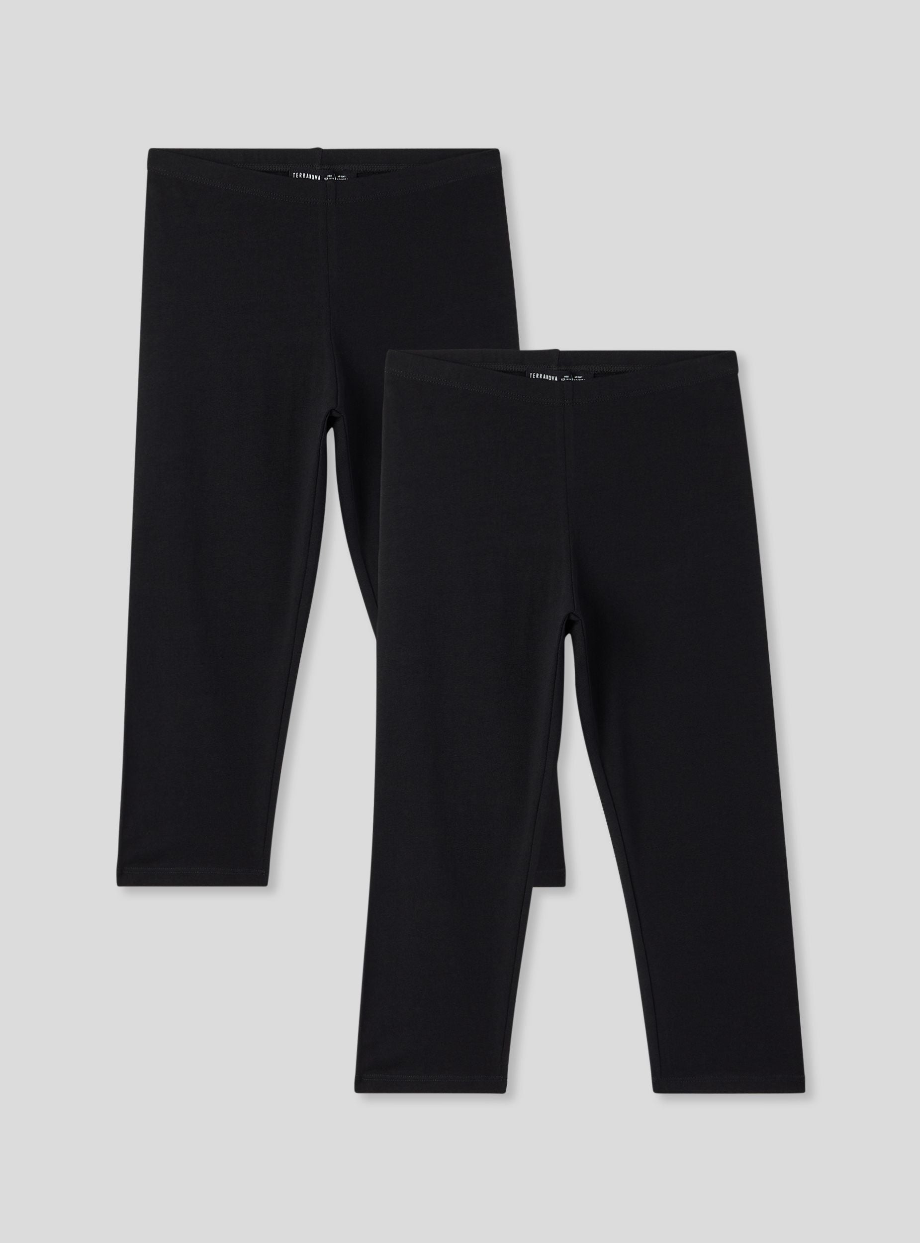 Pack consisting of 2 girls' leggings perfect for more active days or leisure time. The three-quarter design combined with a stretchy and fitted cut ensures maximum comfort and freedom of movement. The solid colour makes them versatile, ideal for pairing with colourful tops or shirts.Details