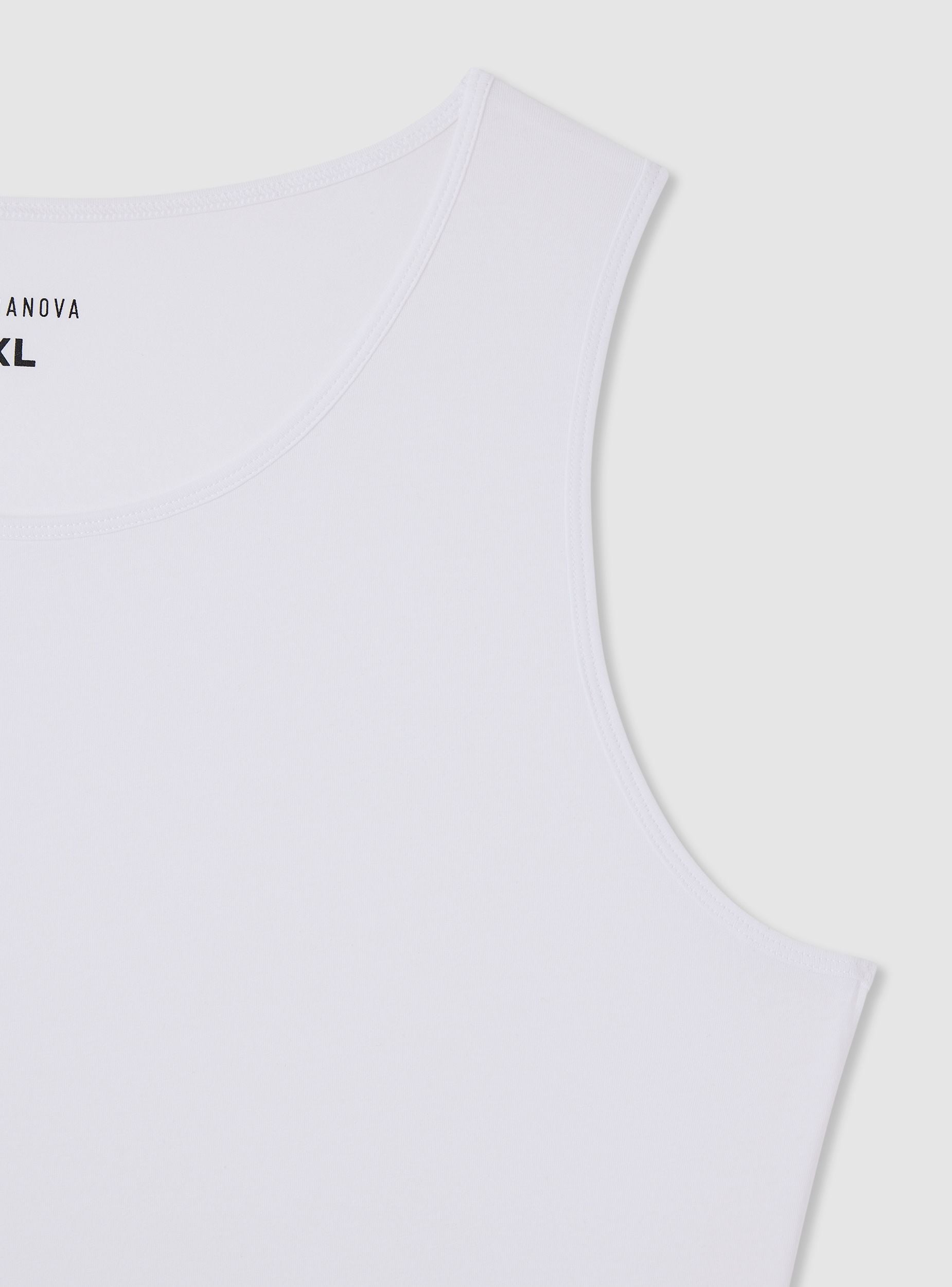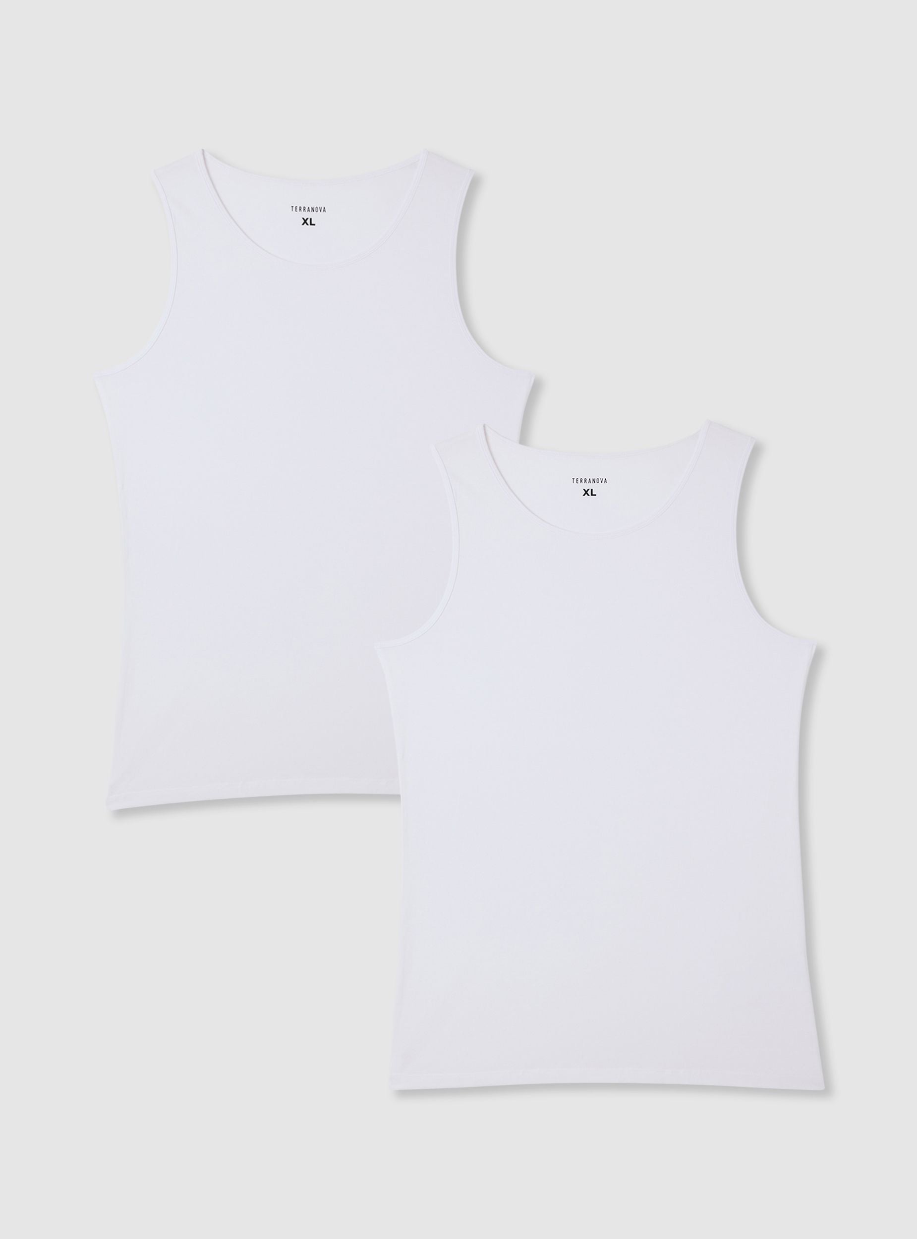 Pack containing 2 plain men's vests, designed for everyday intimate wear. Sleeveless model with a round neckline and finished edges for constant comfort. Essential, stretchy fit that follows the body without constriction, ideal under shirts and jumpers or worn alone during moments of relaxation and light activities.Details