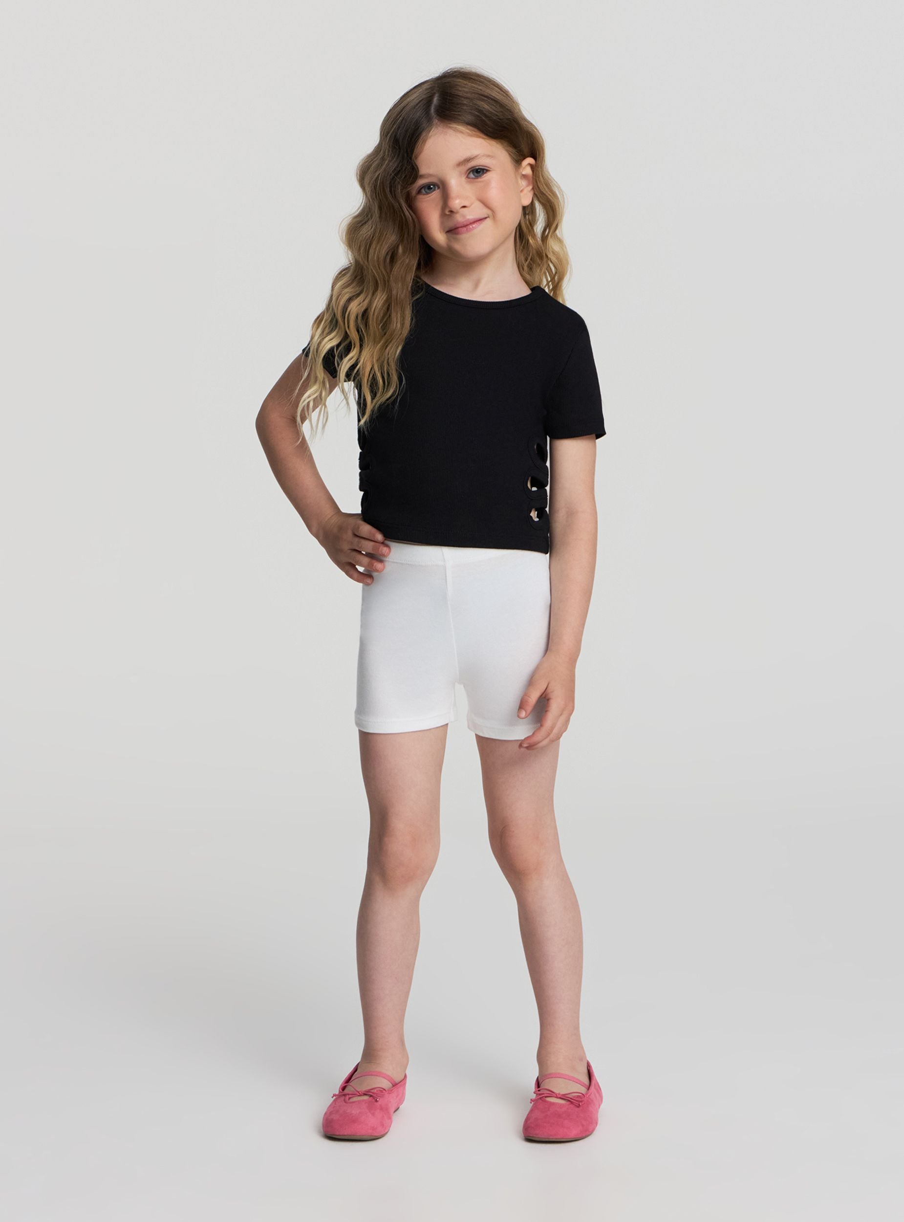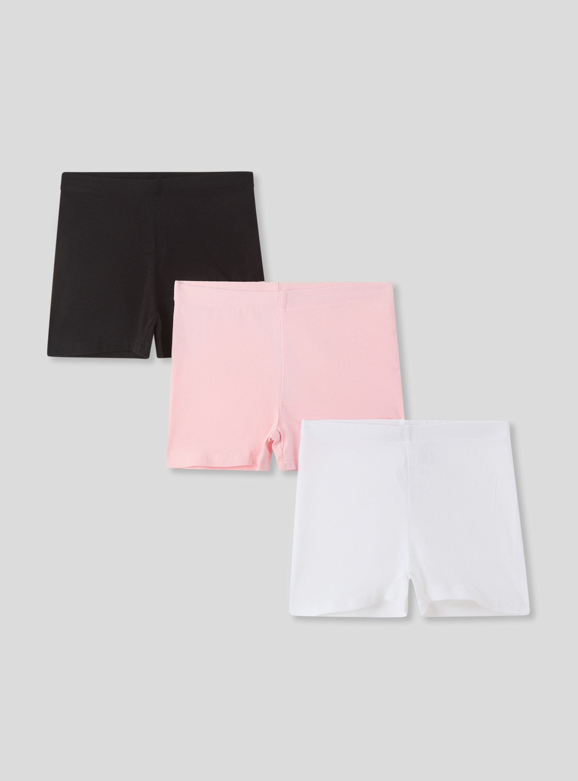 Pack consisting of 3 girls' leggings ideal for play and everyday movement. The short culotte-style design offers a snug and comfortable fit thanks to the stretchy fabric. The solid colour makes them versatile, perfect for completing fresh and practical looks on any occasion.Details