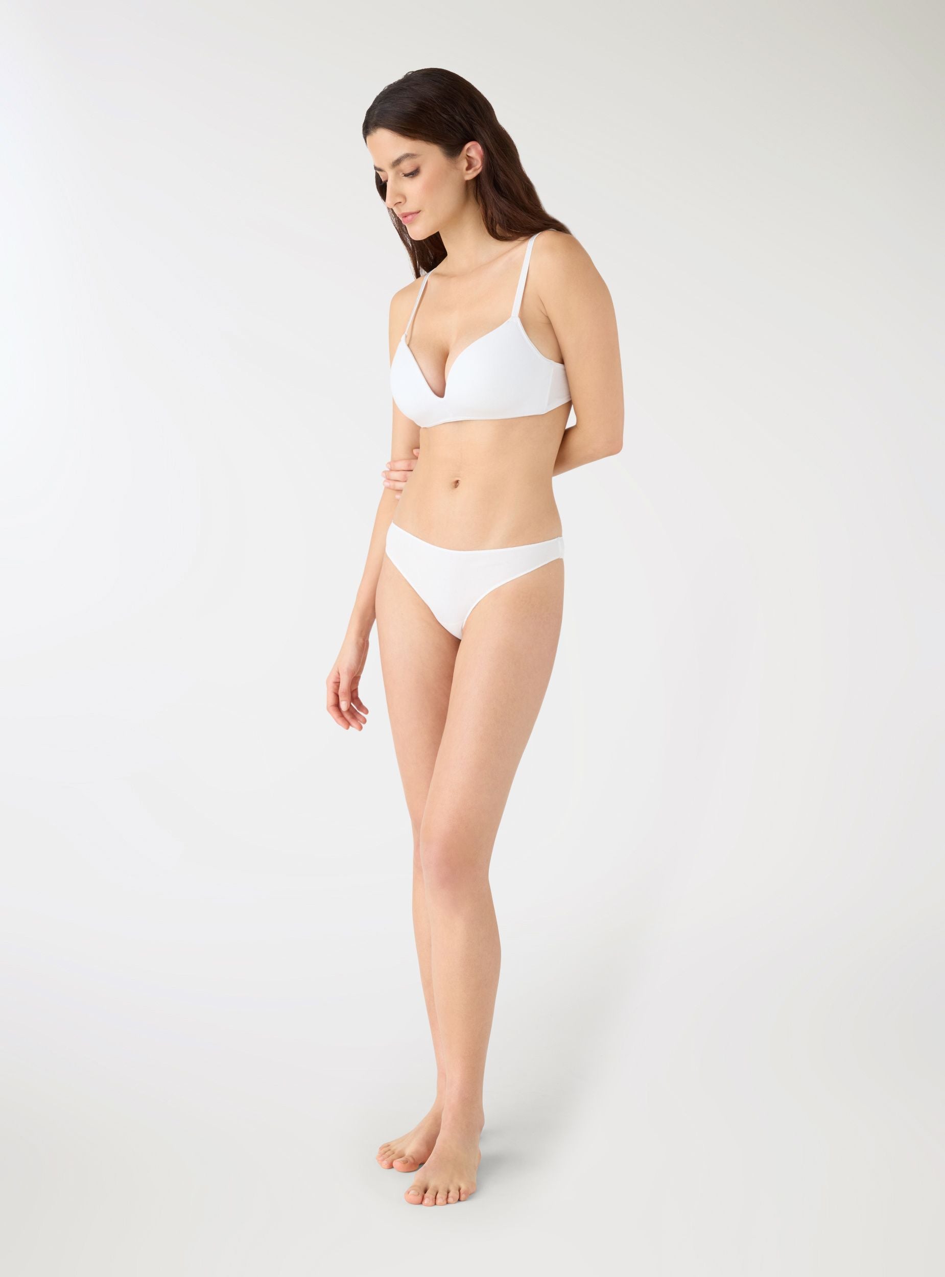 Plain-colour women's briefs, Brazilian style with a simple cut that enhances the silhouette. The clean lines and mid-rise waist make them comfortable under dresses and shorts without visible marks. Ideal for everyday wear and for creating coordinated sets with balconette or triangle bras.Details
