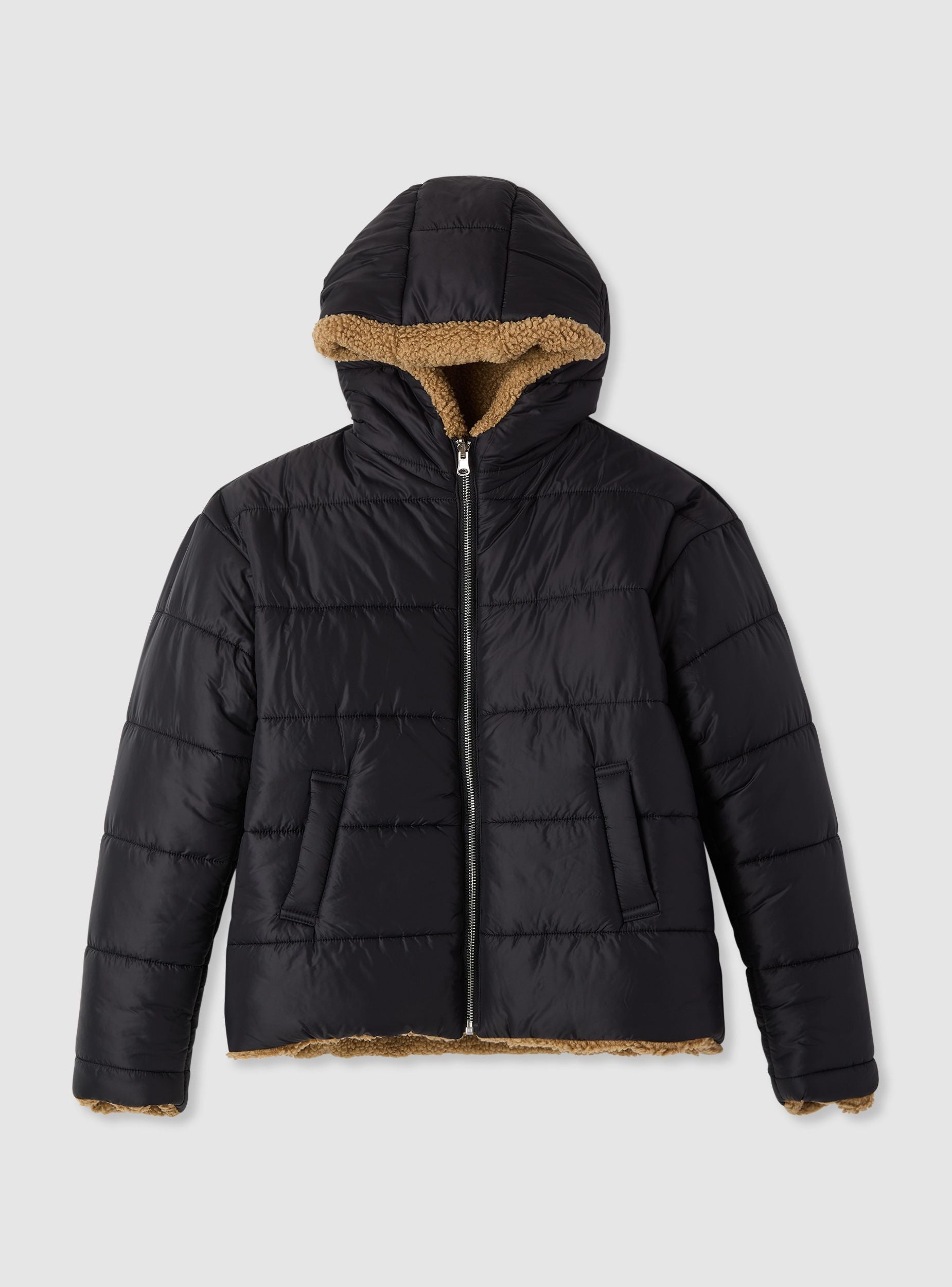 Padded children's jacket with hood, designed for winter and school days. Front zip closure, welt side pockets, and a regular fit that allows it to be worn over sweatshirts or jumpers. Ideal with jeans and trainers for a practical and warm look.Details