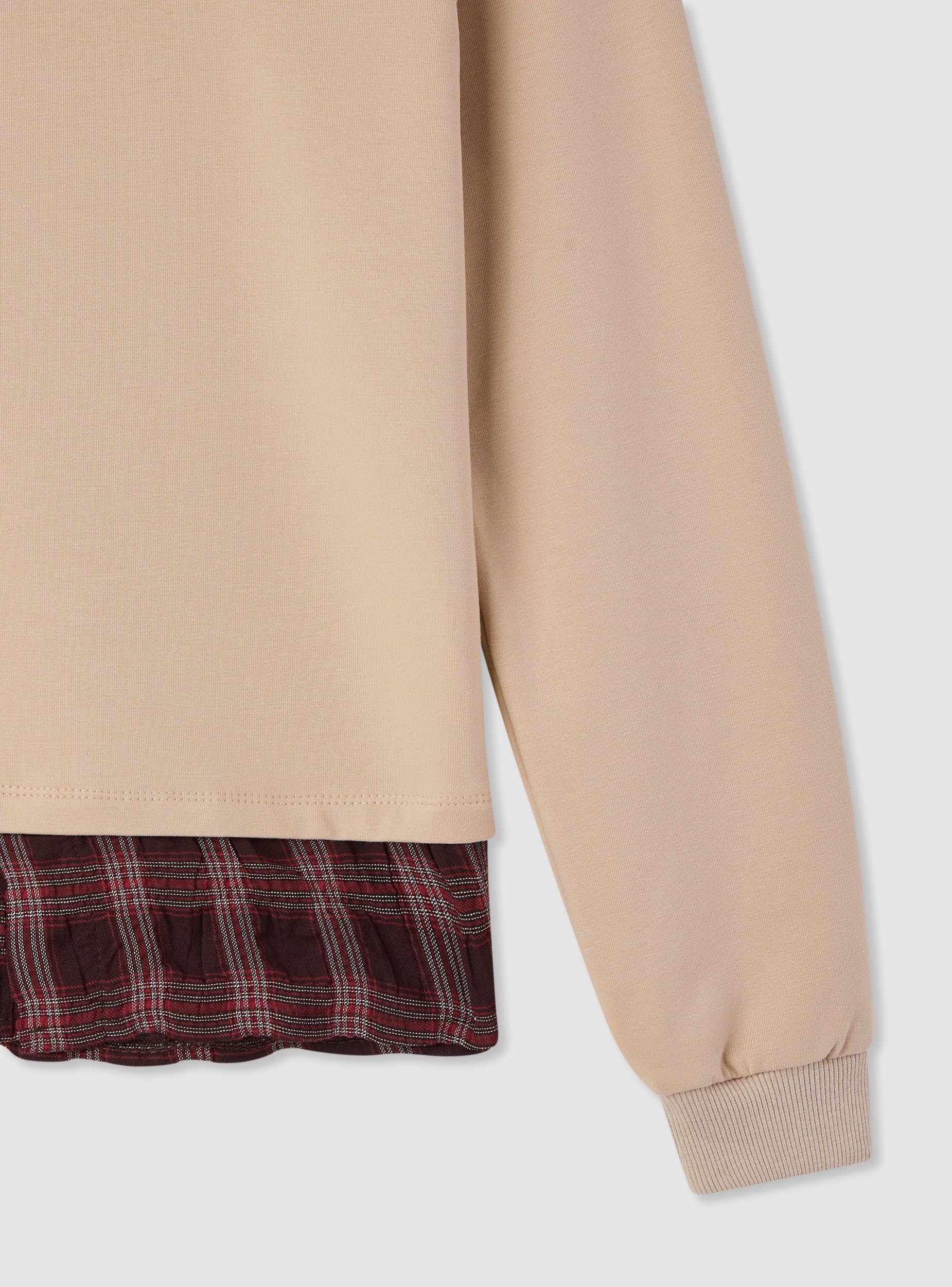Children's hoodie, ideal for school and leisure. Long-sleeved lined model with elasticated cuffs. The hood and hem feature a checkered insert that adds a trendy touch and is easy to pair with jeans or jogger trousers. Comfortable fit and straight cut for everyday use, perfect for layering over a t-shirt in the transitional seasons.Details