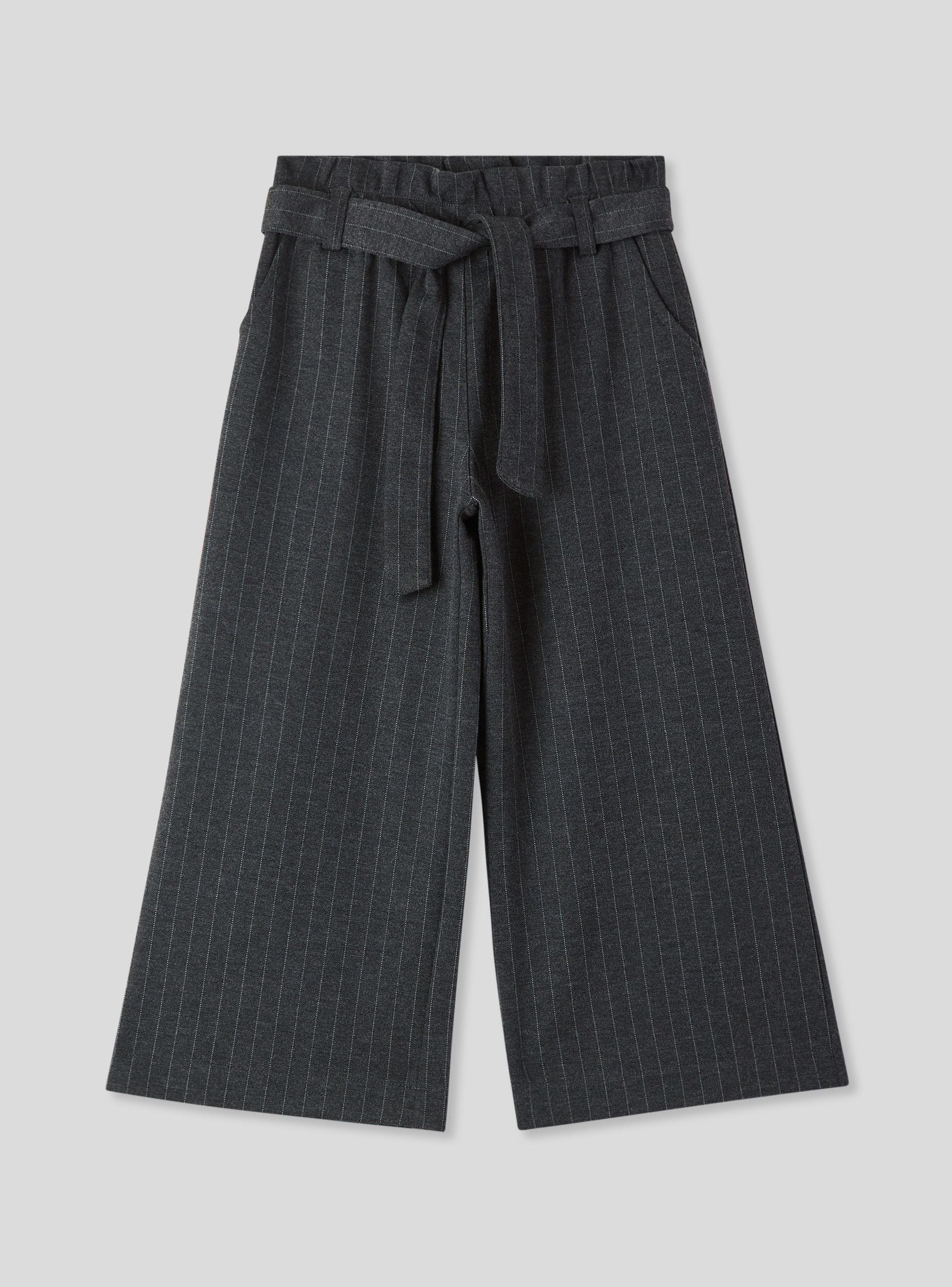 Wide-cut and modern girls' trousers, ideal for creating versatile looks suitable for both school and leisure. The wide-leg design and the coordinating sash waistband enhance the silhouette and ensure comfort. The slanted side pockets add practicality, while the pinstripe pattern gives an elegant and contemporary touch.Details