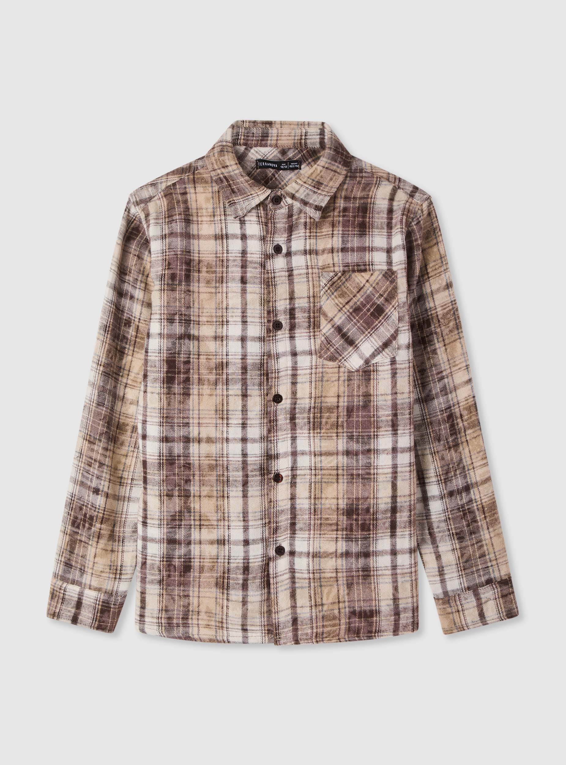Children's checkered shirt with long sleeves and a classic collar. Front button closure and a chest patch pocket, with a large printed number and lettering on the back adding an urban touch. Regular fit, easy to layer over t-shirts and light sweatshirts, perfect for school and leisure. Ideal with jeans or cargo trousers for versatile, casual outfits.Details