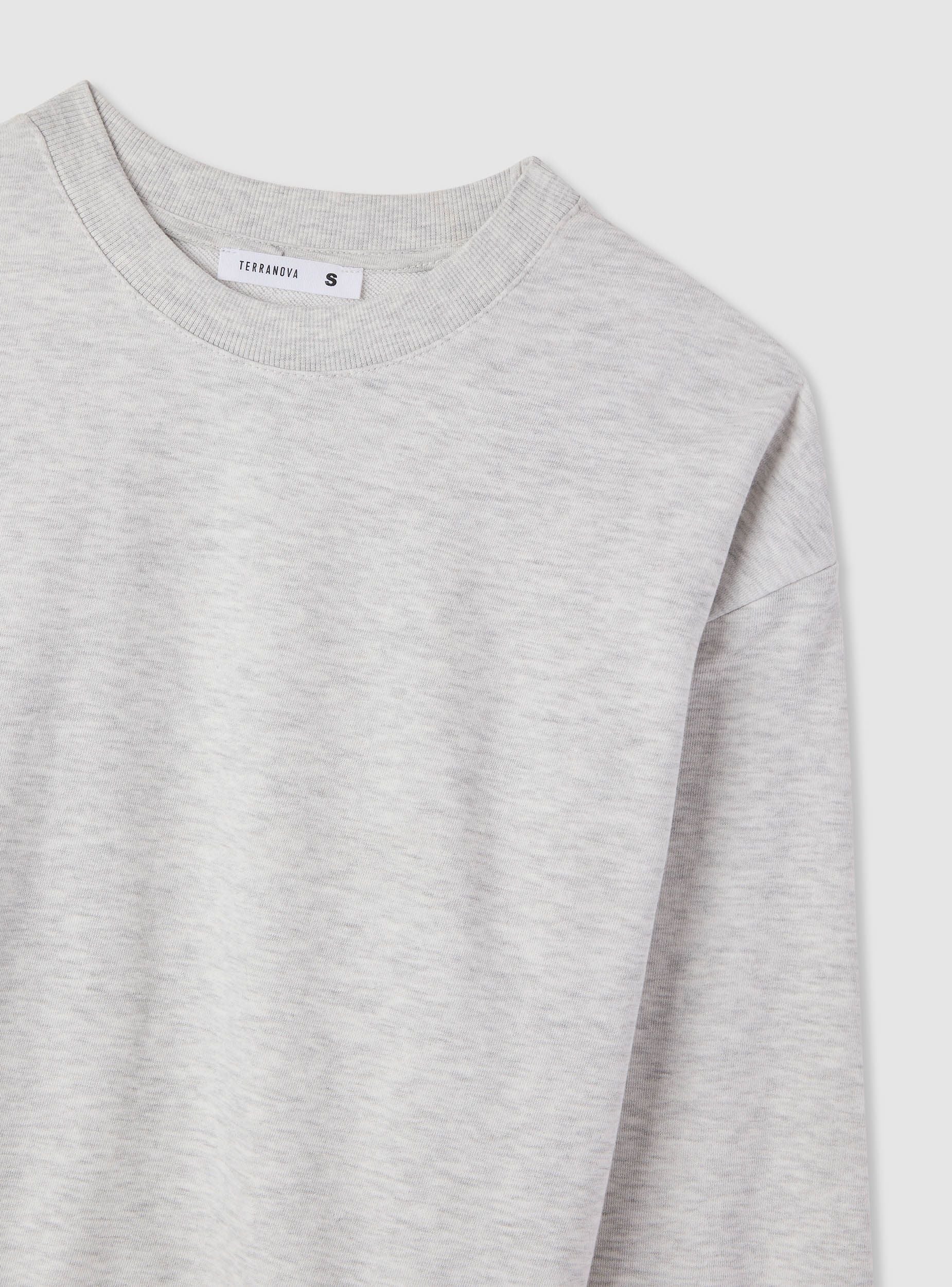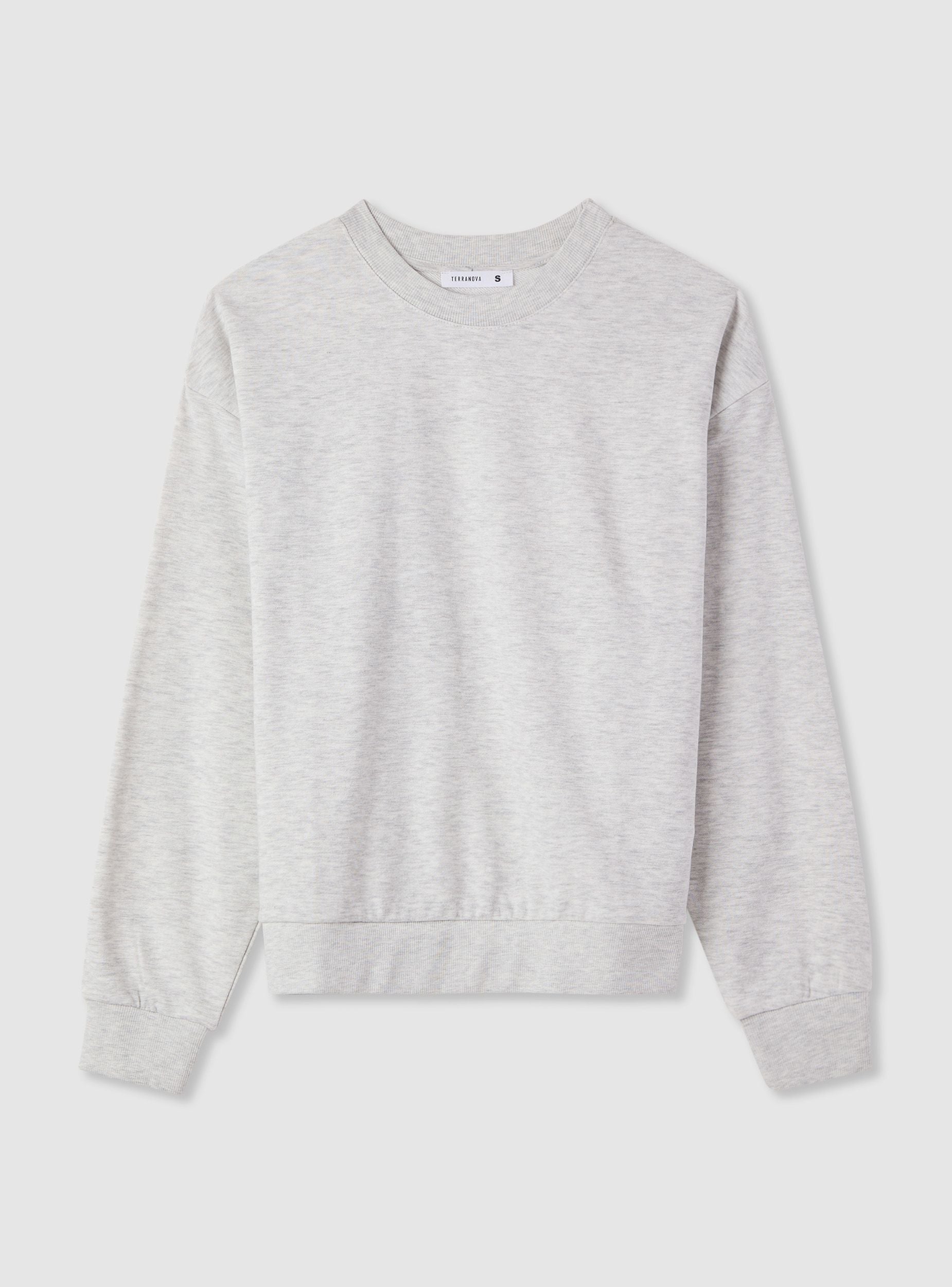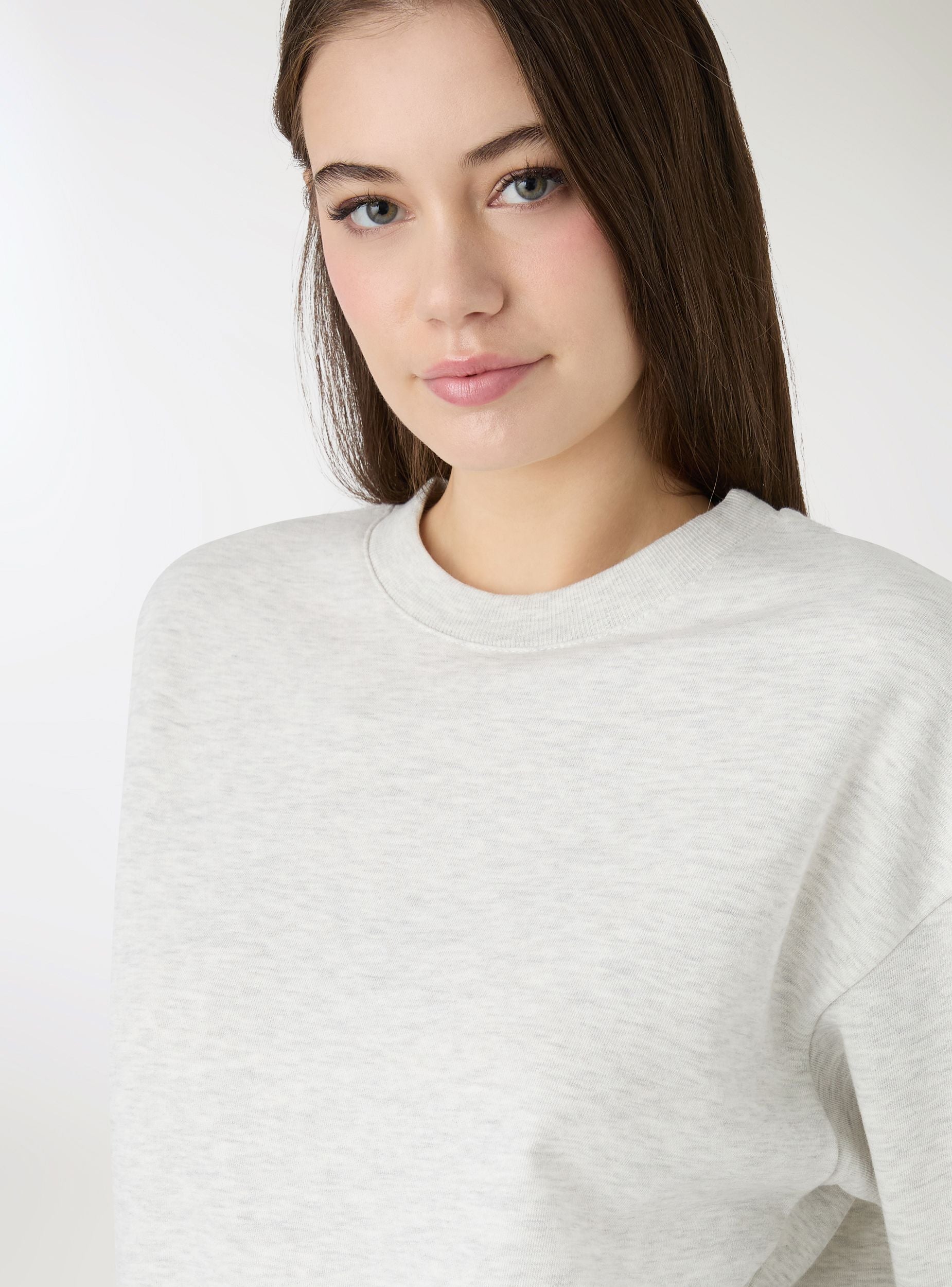 Women's sweatshirt without hood and without zip, in a solid colour. Ribbed crew neck, long sleeves with elasticated cuffs, and hem with a knitted band for a comfortable fit. Minimal design ideal for leisure time and casual looks with jeans or joggers, also perfect under a coat or jacket. Lightweight fabric.