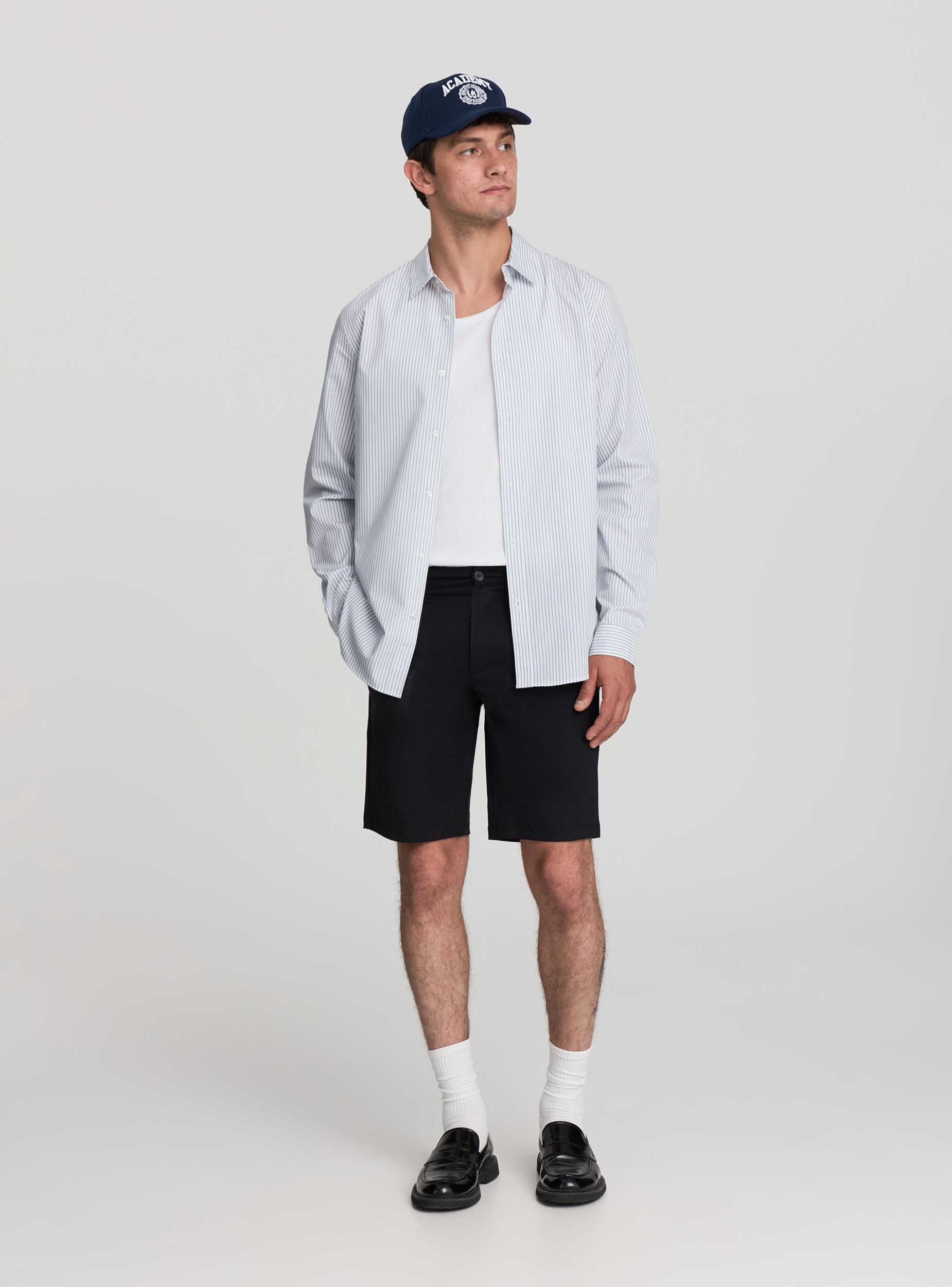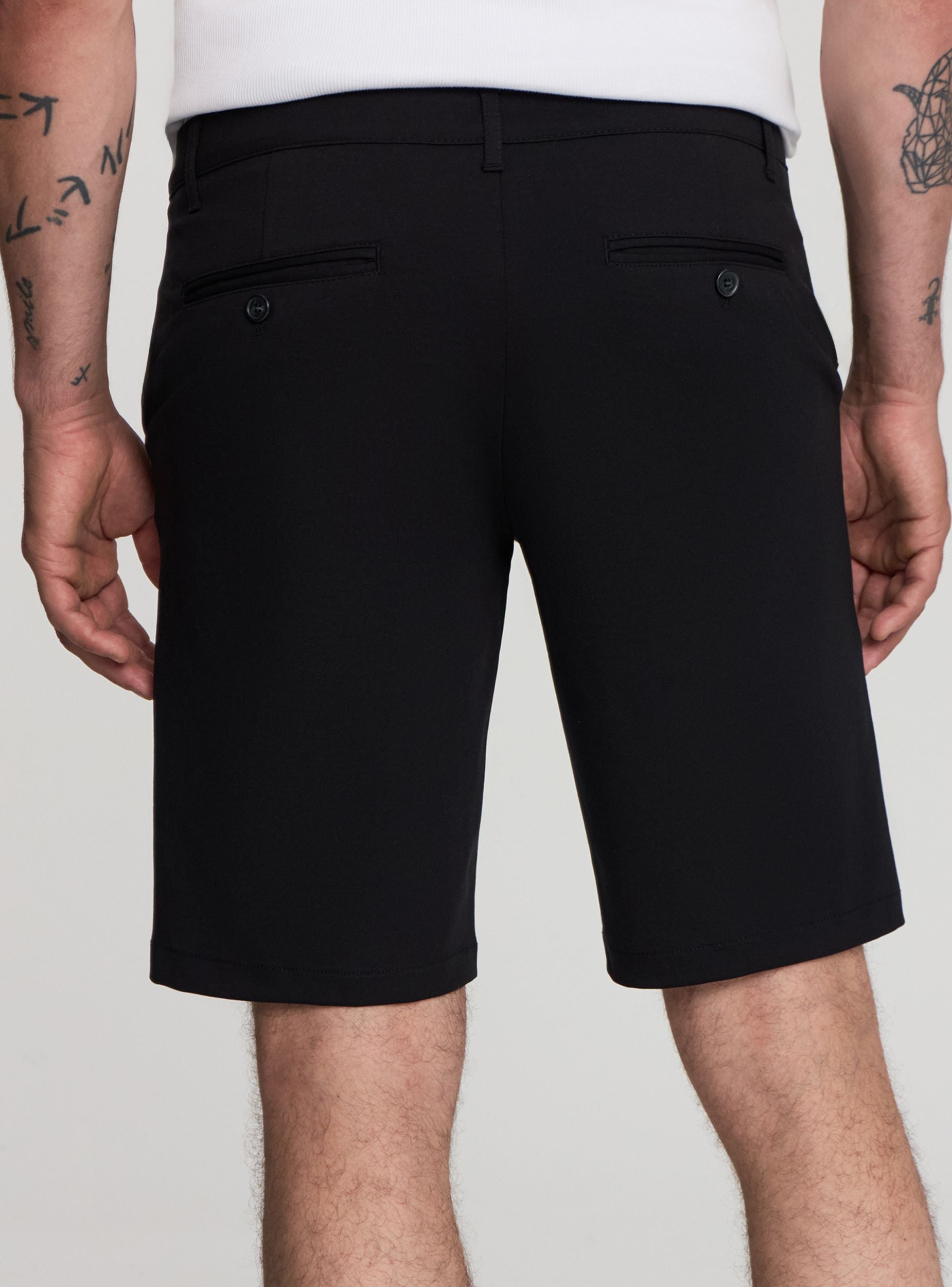 Men's shorts, chino style in solid cotton. Button and zip closure. They feature side pockets and belt loops, ideal for casual or semi-formal looks. Perfect for leisure time, city walks, or summer evenings, they pair well with shirts or polo shirts.Details