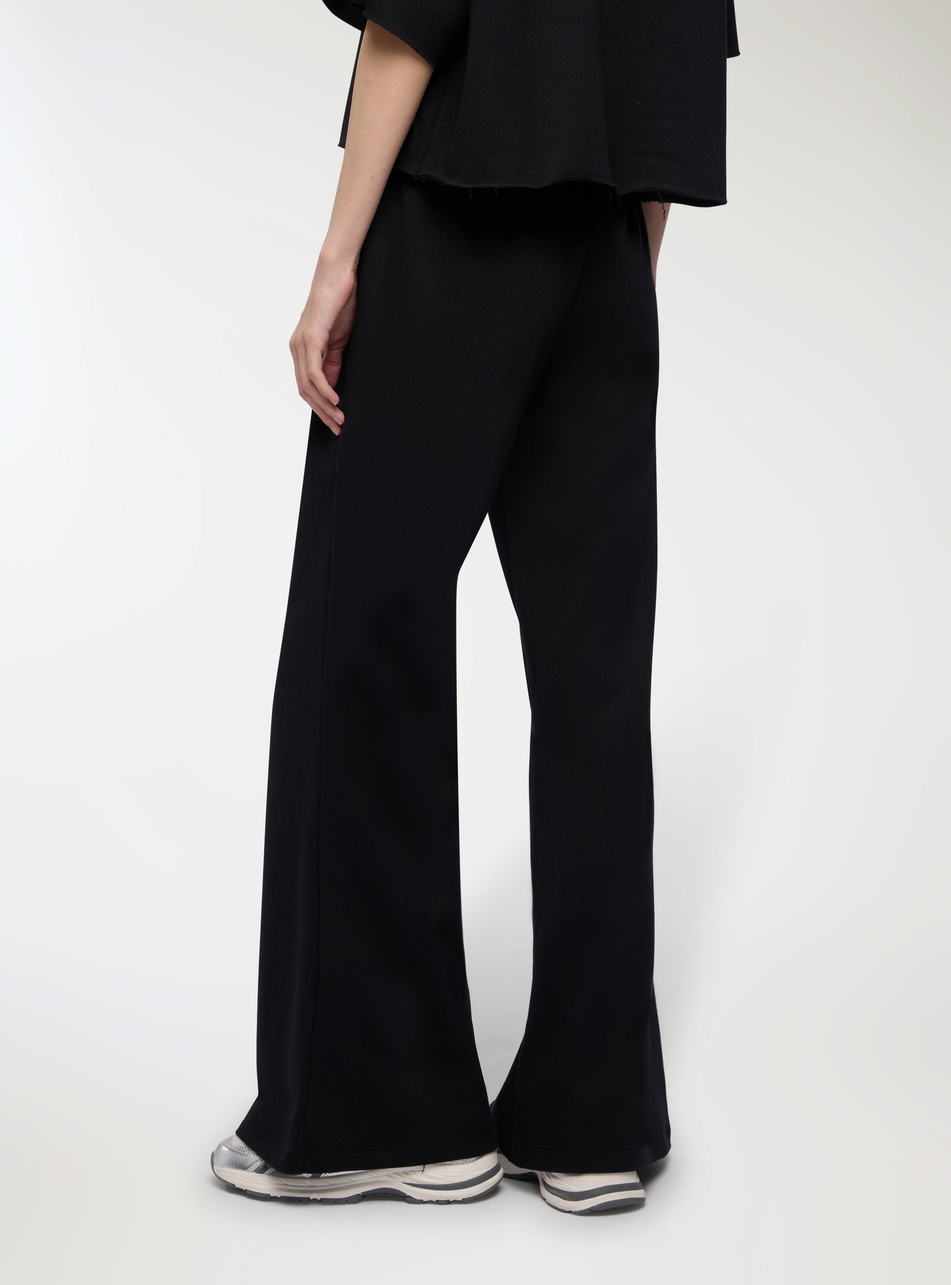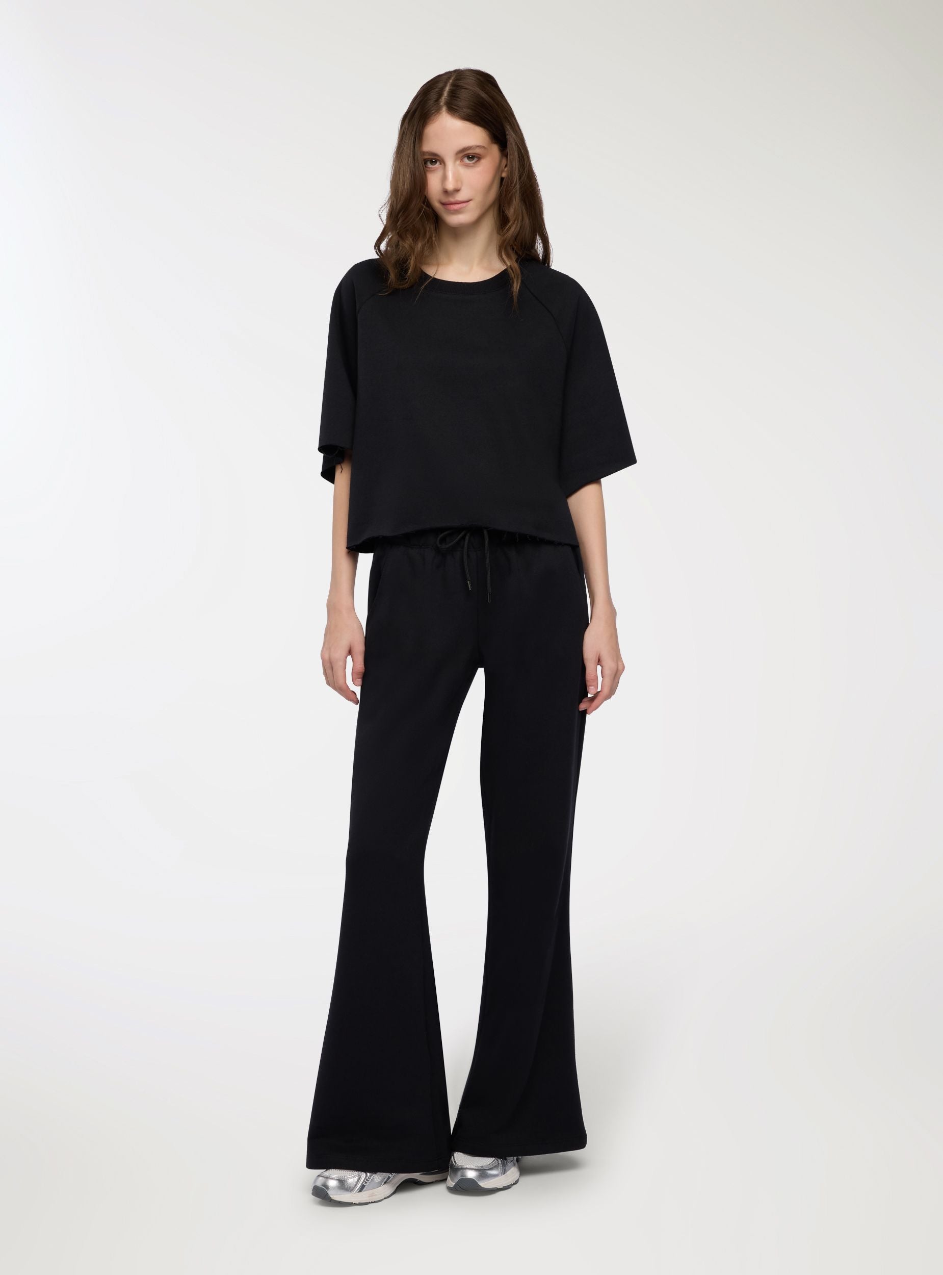 Women's flared sweatpants, ideal for leisure time and casual looks. Waist with adjustable drawstring and welt side pockets for practicality. Ankle length and regular fit that flatters the figure without being restrictive. Perfect with sweatshirts or t-shirts and sneakers for comfortable outfits, or with cardigans and tops for a relaxed yet polished touch. Lightweight plain fabric.Details