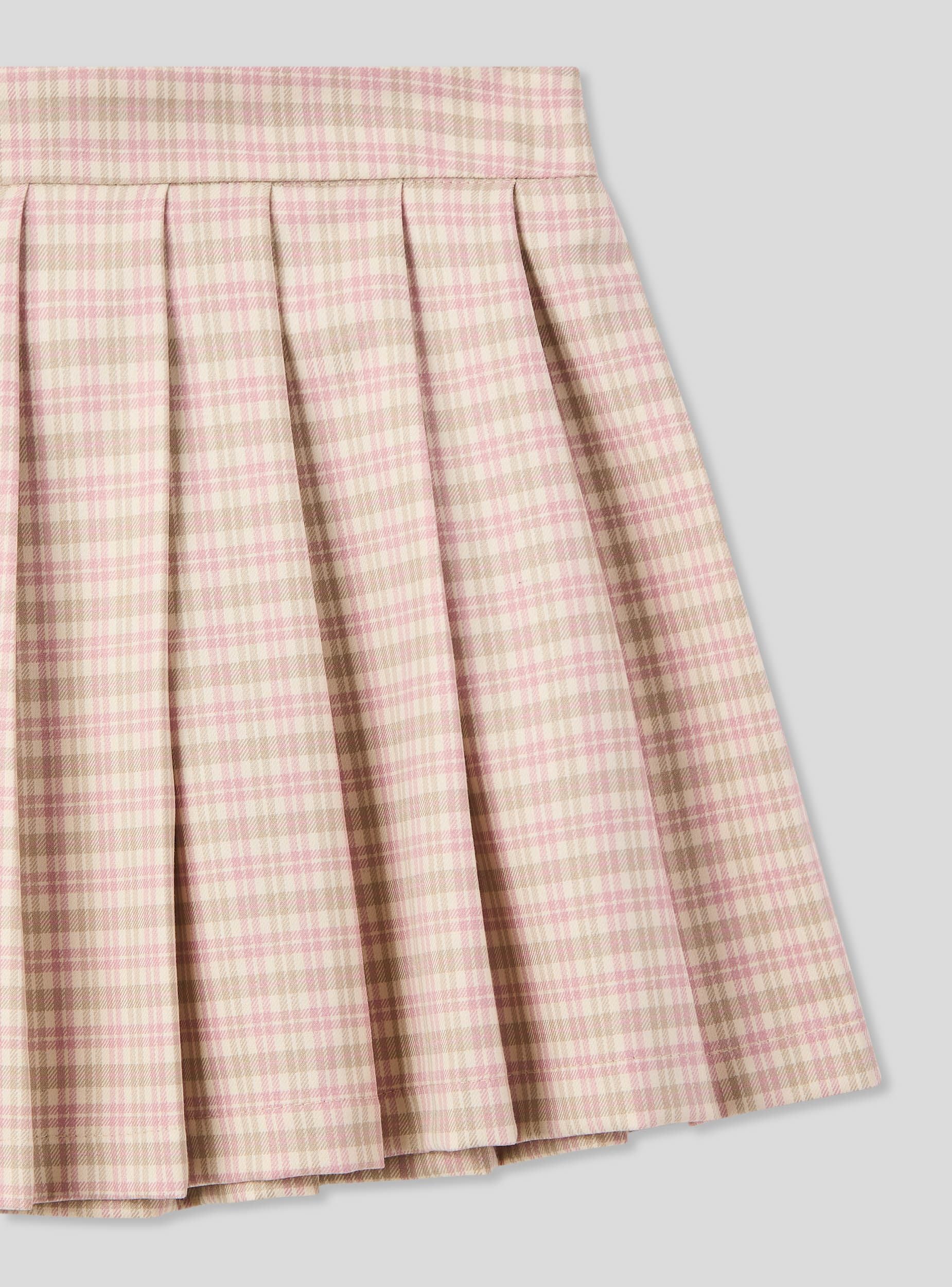 Women's short skirt ideal for a trendy and feminine look, perfect for leisure time or a casual outfit. Characterised by a comfortable fit, it features a pleated design with a check pattern. A versatile choice for those seeking style and practicality on any occasion.Details