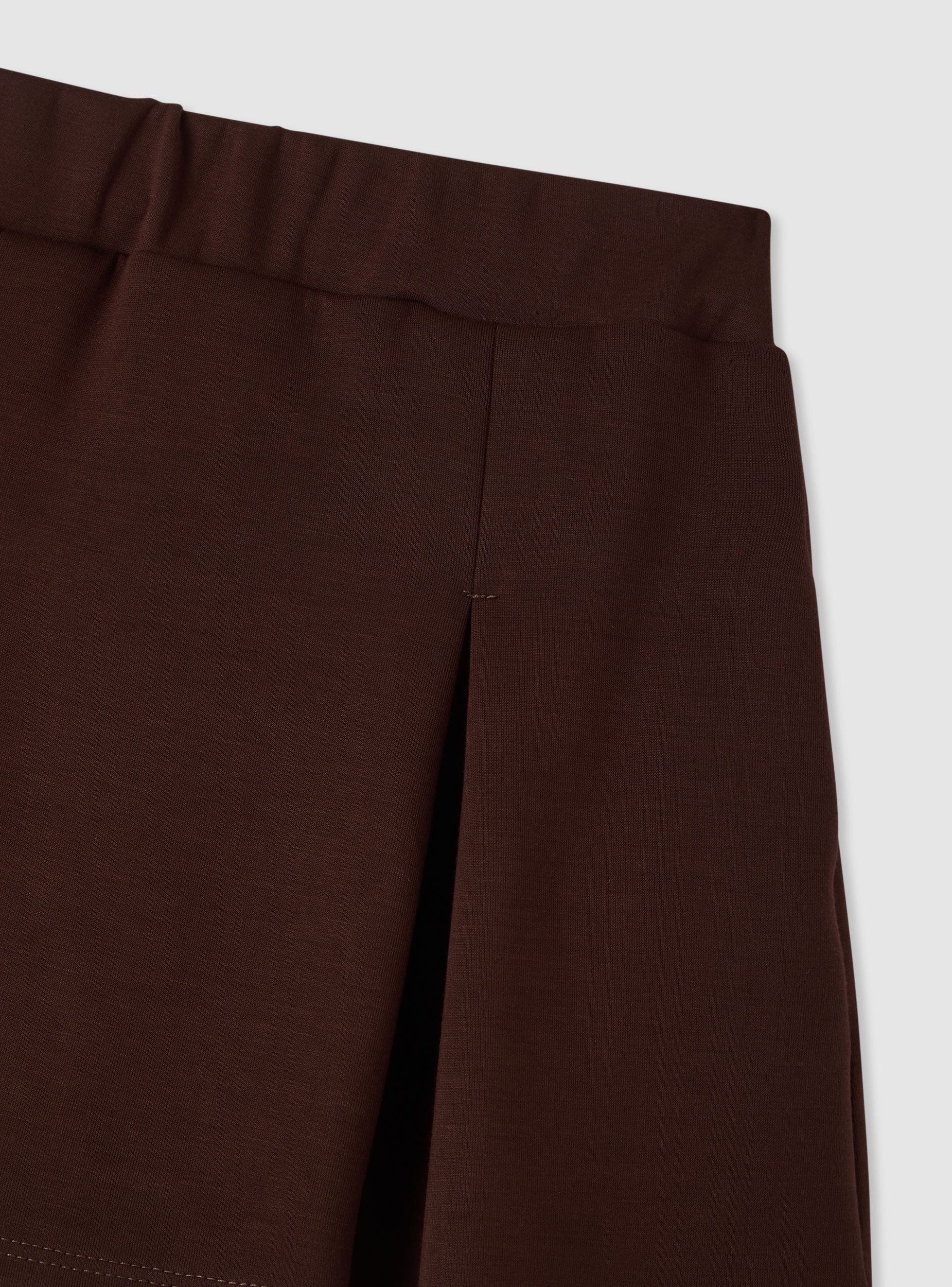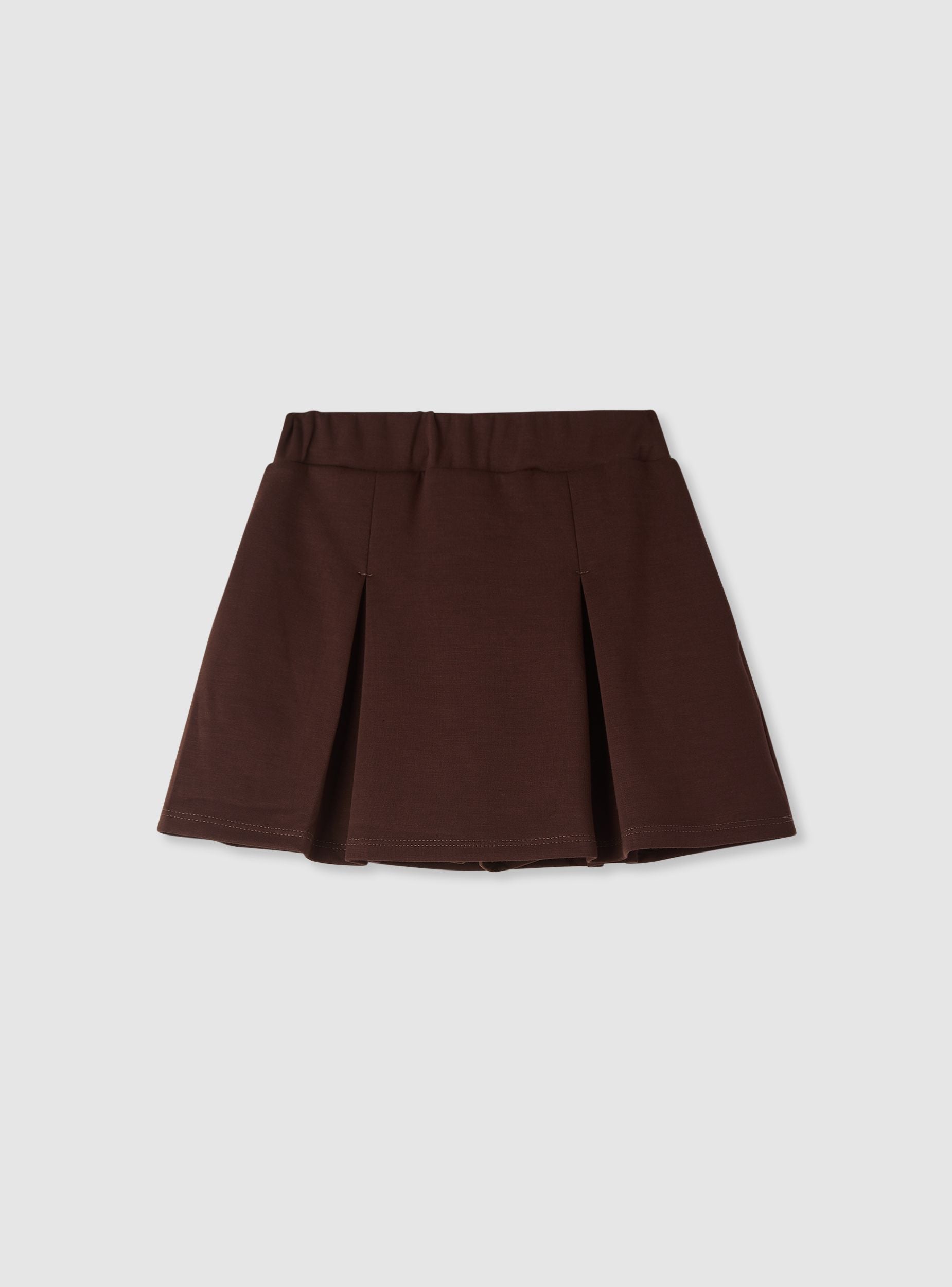 Plain-coloured girl's skirt with front pleats and an elasticated waistband, designed for school and leisure. Mini length and flared shape that allows ease of movement. Pairs well with a T-shirt and cardigan or a sweatshirt for a casual look. Clean details and visible stitching on the hem enhance the simple design.Details