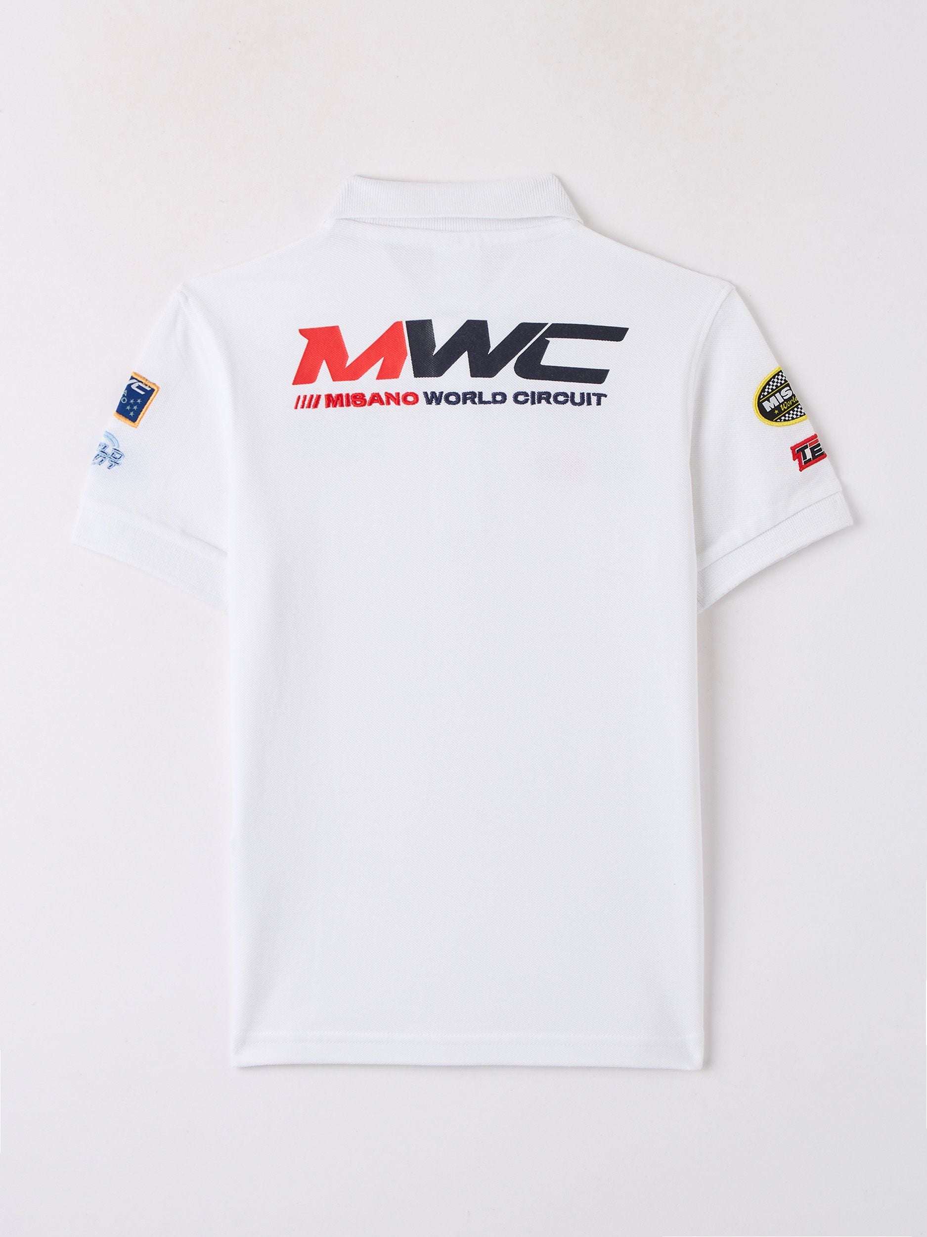Children's t-shirt, polo model with writings and Misano World Circuit logo patch. Cotton fabric, regular fit. The model is 1.20m tall and wears size 6-7 years.Details