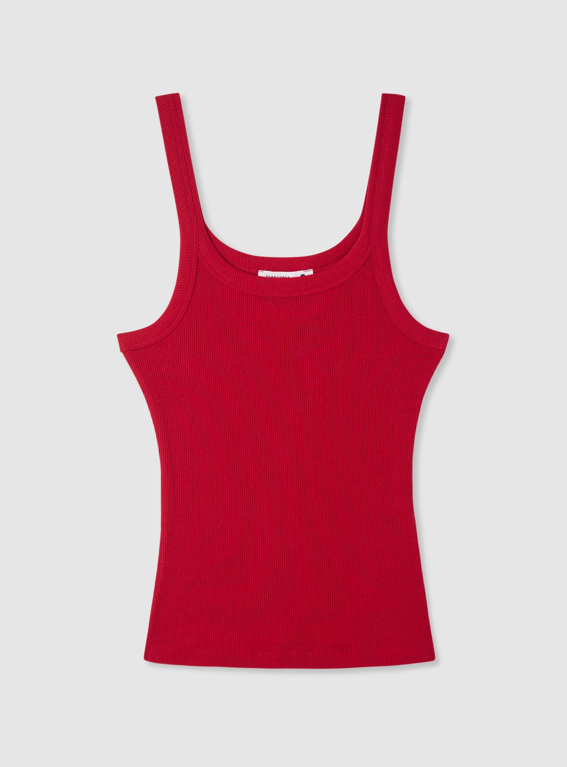 Ribbed tank top with thin straps - Red dark