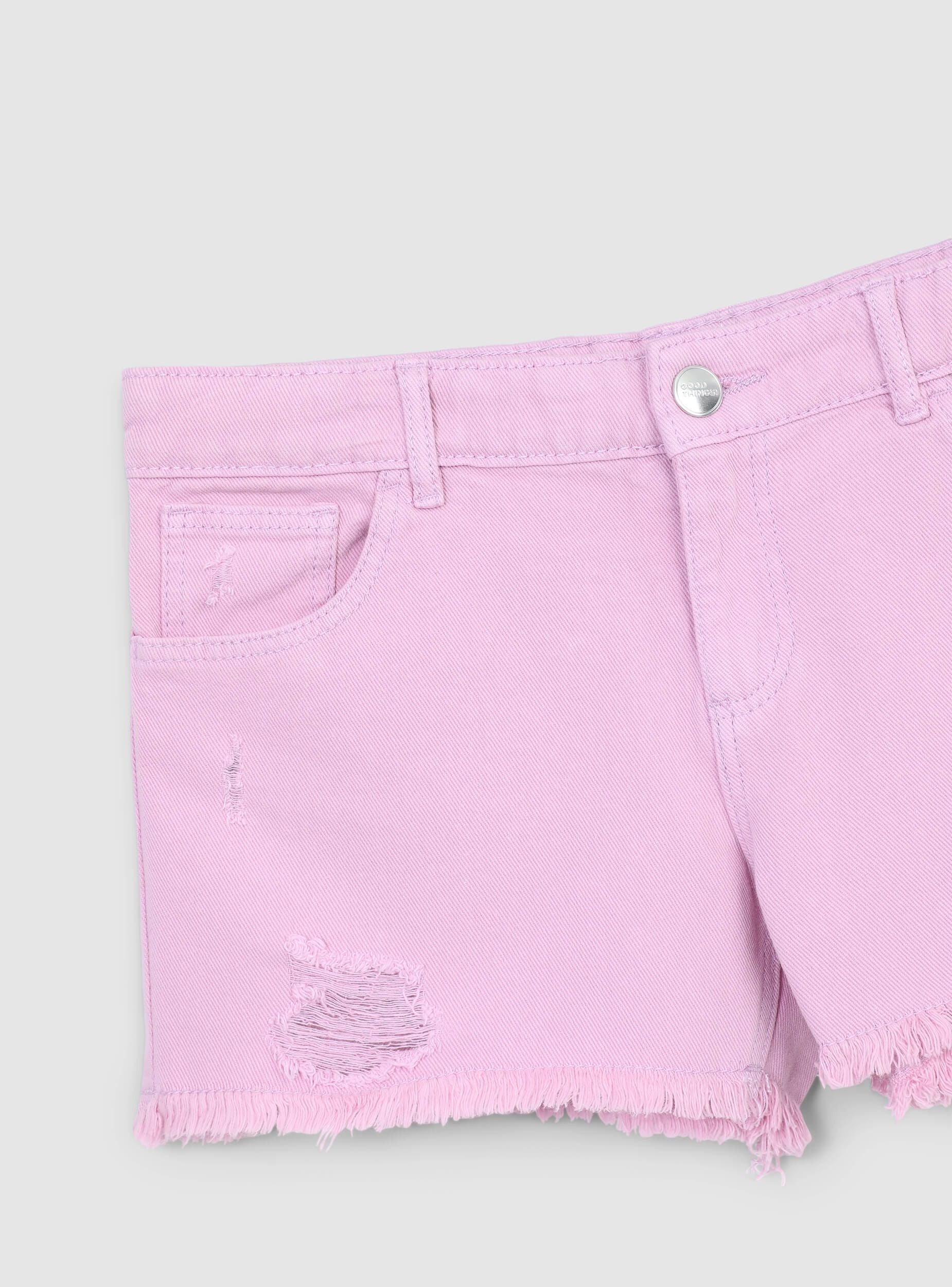 Perfect girls' shorts for a casual and stylish look. Featuring a solid colour finish with distressed details that add an edgy touch. Equipped with comfortable front and back pockets, and a practical zip and button closure, ideal for a day outdoors or for leisure time.Details