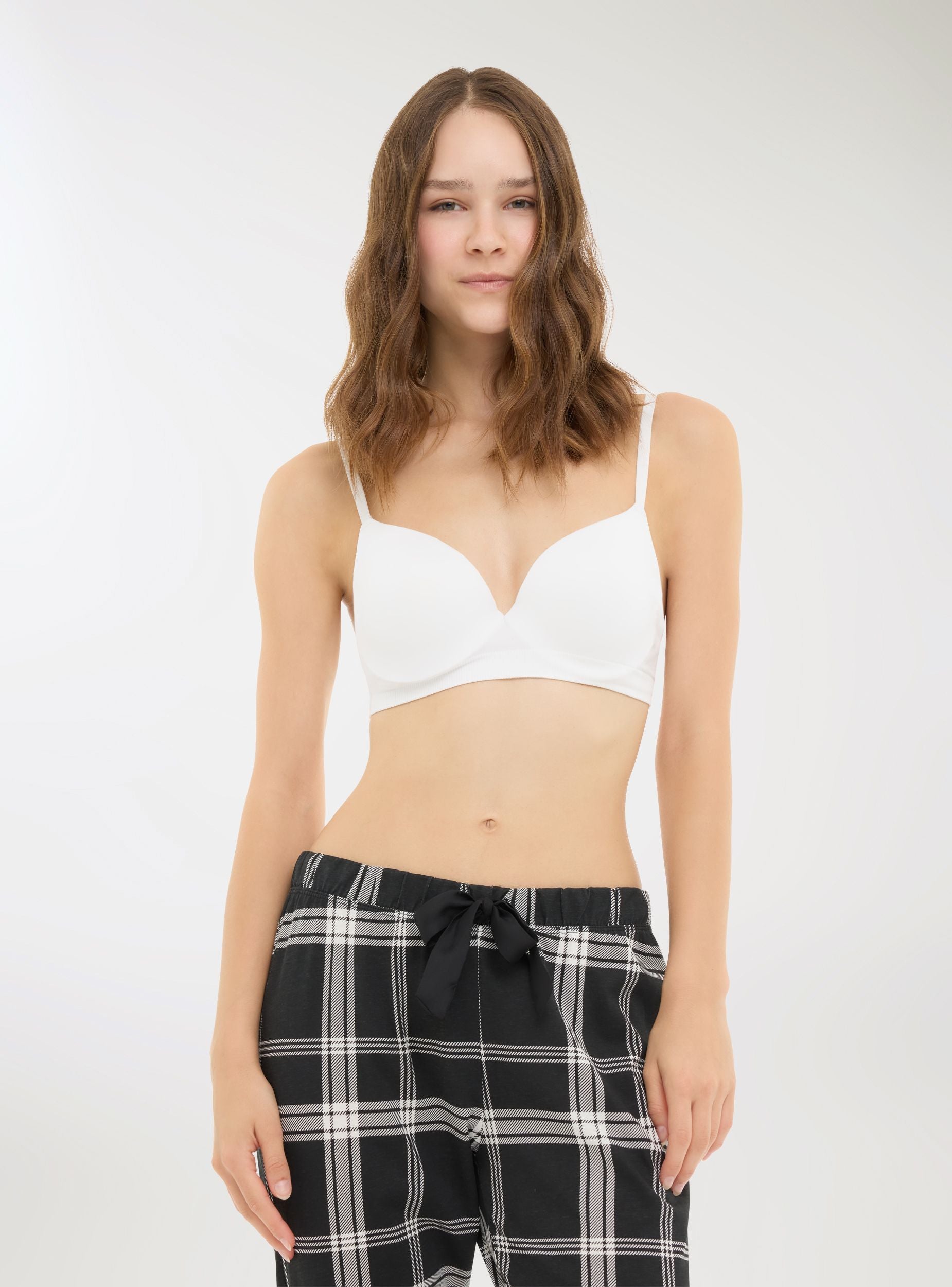 Women's bra with seamless balconette design, ideal for a comfortable and discreet look. Perfect to wear under tight-fitting dresses thanks to its seamless fit. Adjustable straps ensure personalised comfort, while the padded support offers a natural push-up effect. A versatile garment for every occasion.
