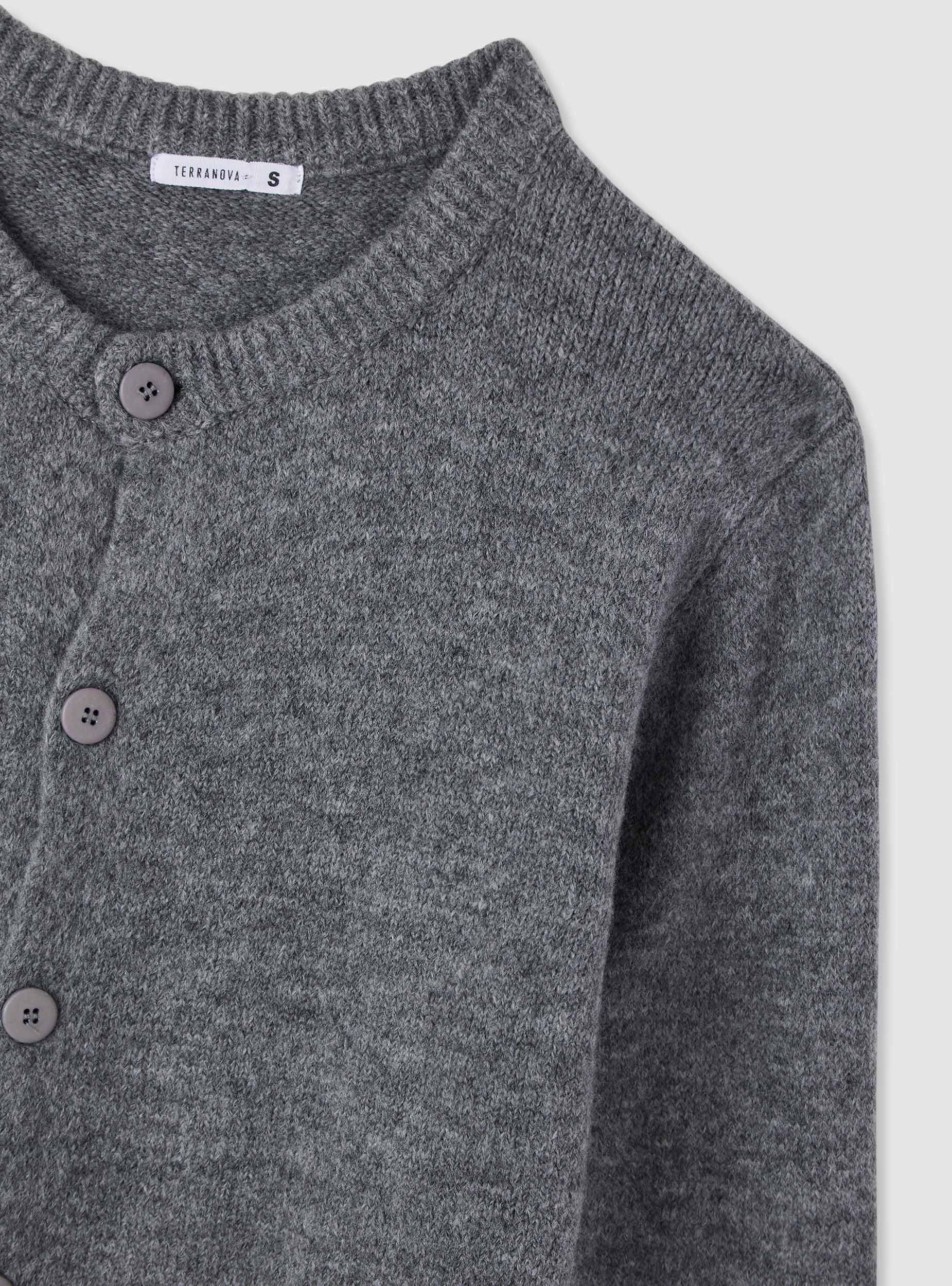 Men's solid-colour cardigan with buttons. Crew neck design with a boxy cut, long sleeves, and ribbed edges on the cuffs and hem for a comfortable fit. Perfect for casual days or a relaxed office environment, it pairs well with a shirt and chinos or a t-shirt and jeans. A simple design that enhances layered looks in the transitional seasons.Details