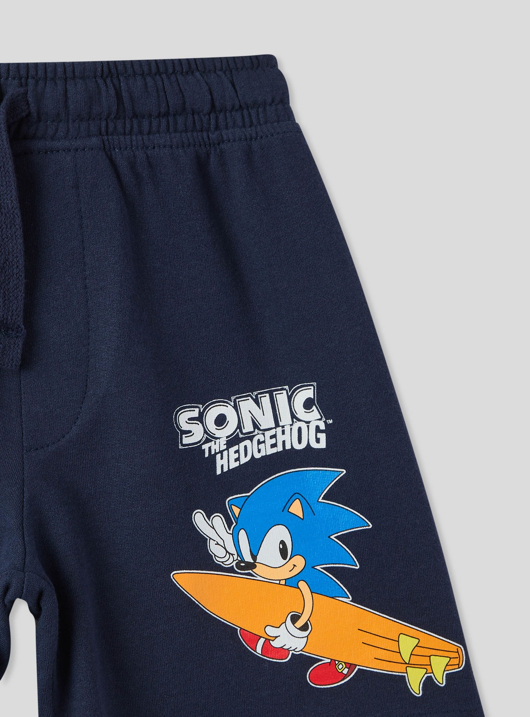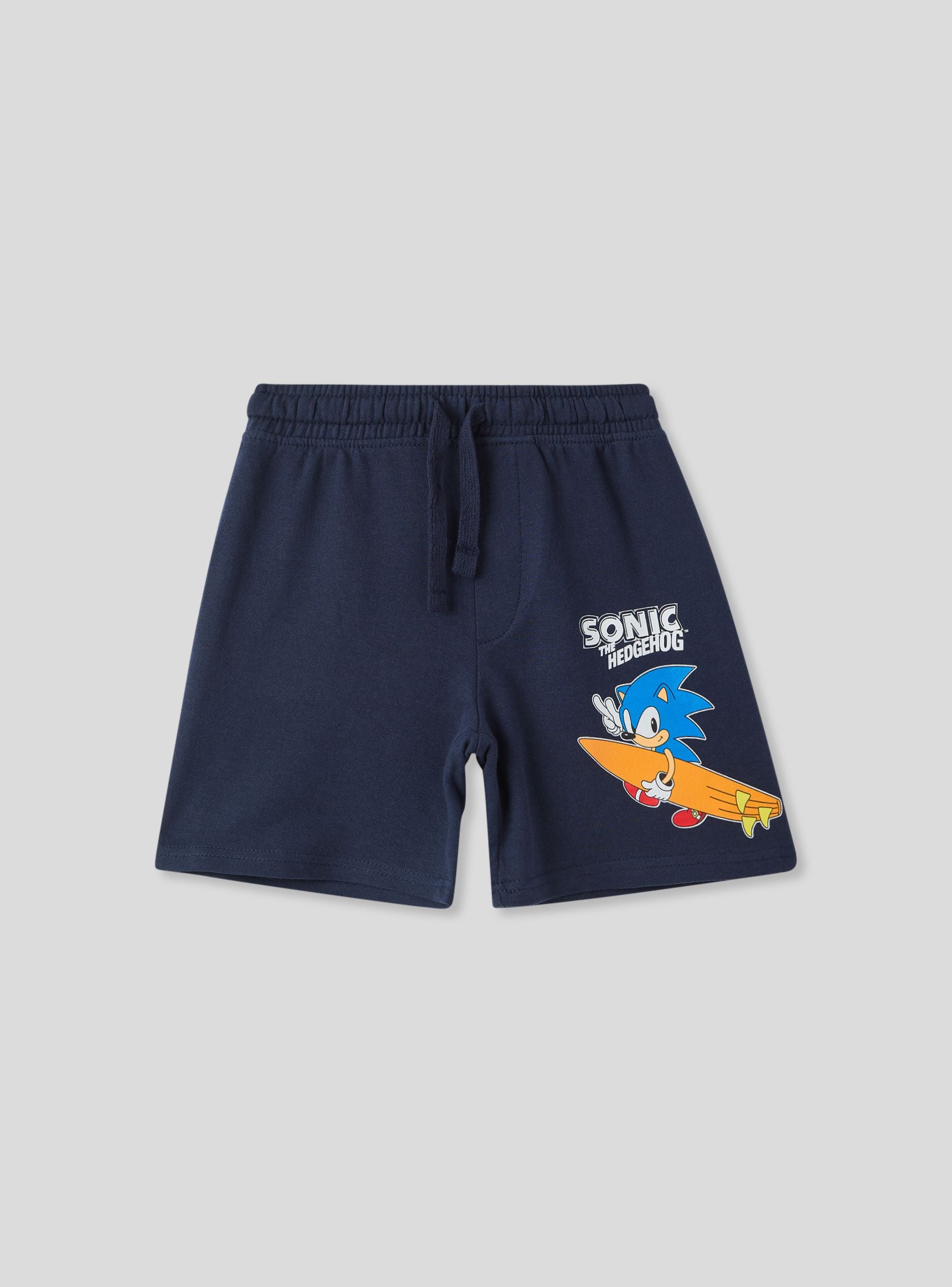 Lightweight boys' tracksuit shorts perfect for sports activities or moments of relaxation, featuring a practical drawstring for an adjustable fit. Equipped with a functional back pocket and enhanced by a vibrant Sonic® surf print on the side, they add a touch of fun to the summer wardrobe. Versatile and comfortable, ideal for any casual occasion.