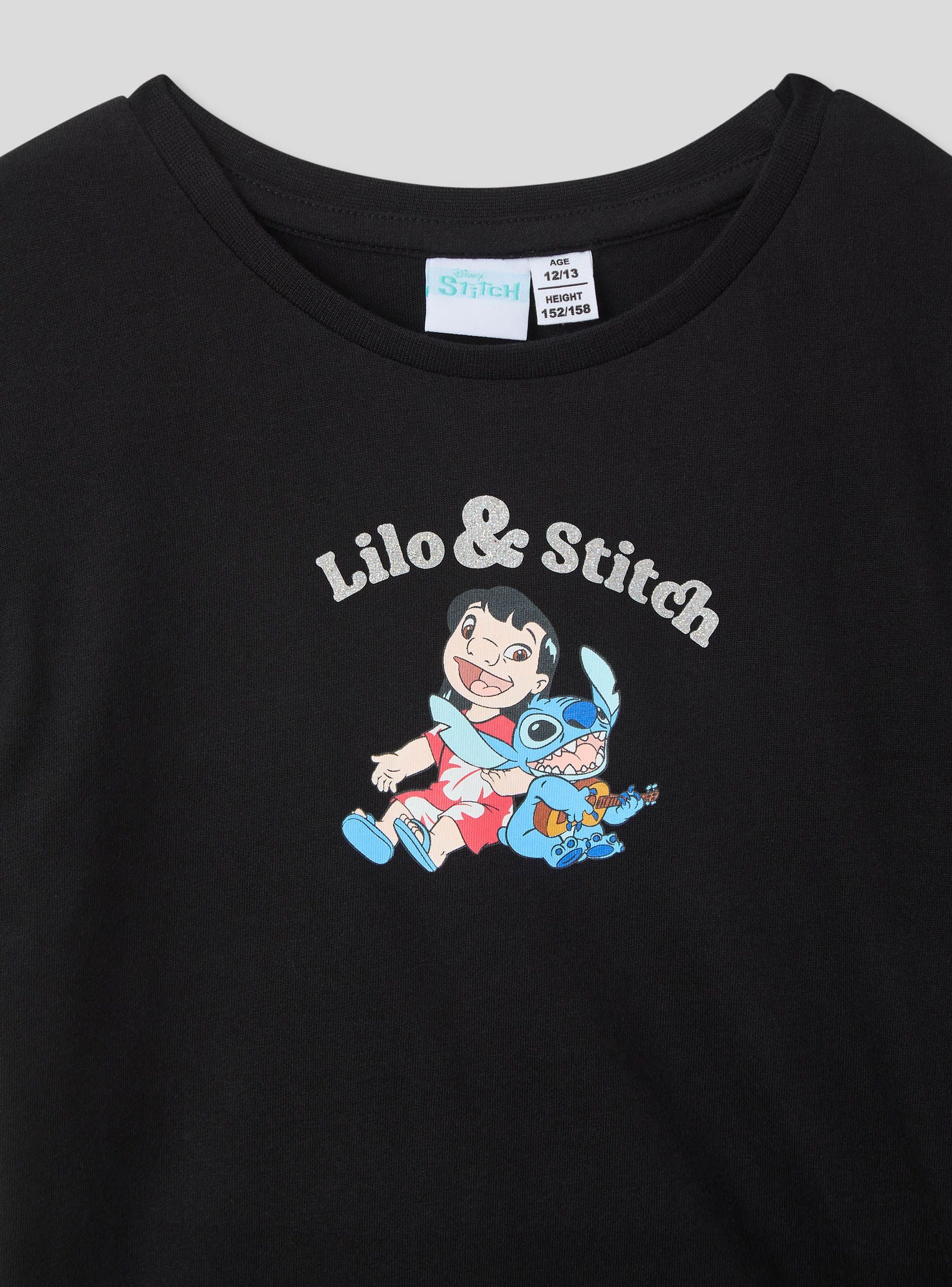 Ideal girls' t-shirt to add a fun touch to the everyday wardrobe. Perfect for playtime and relaxation, it features short sleeves, a crew neck, and a vibrant Lilo and Stitch® print that catches the eye. A unique piece that combines style and comfort, perfect for a casual and cheerful look.Details
