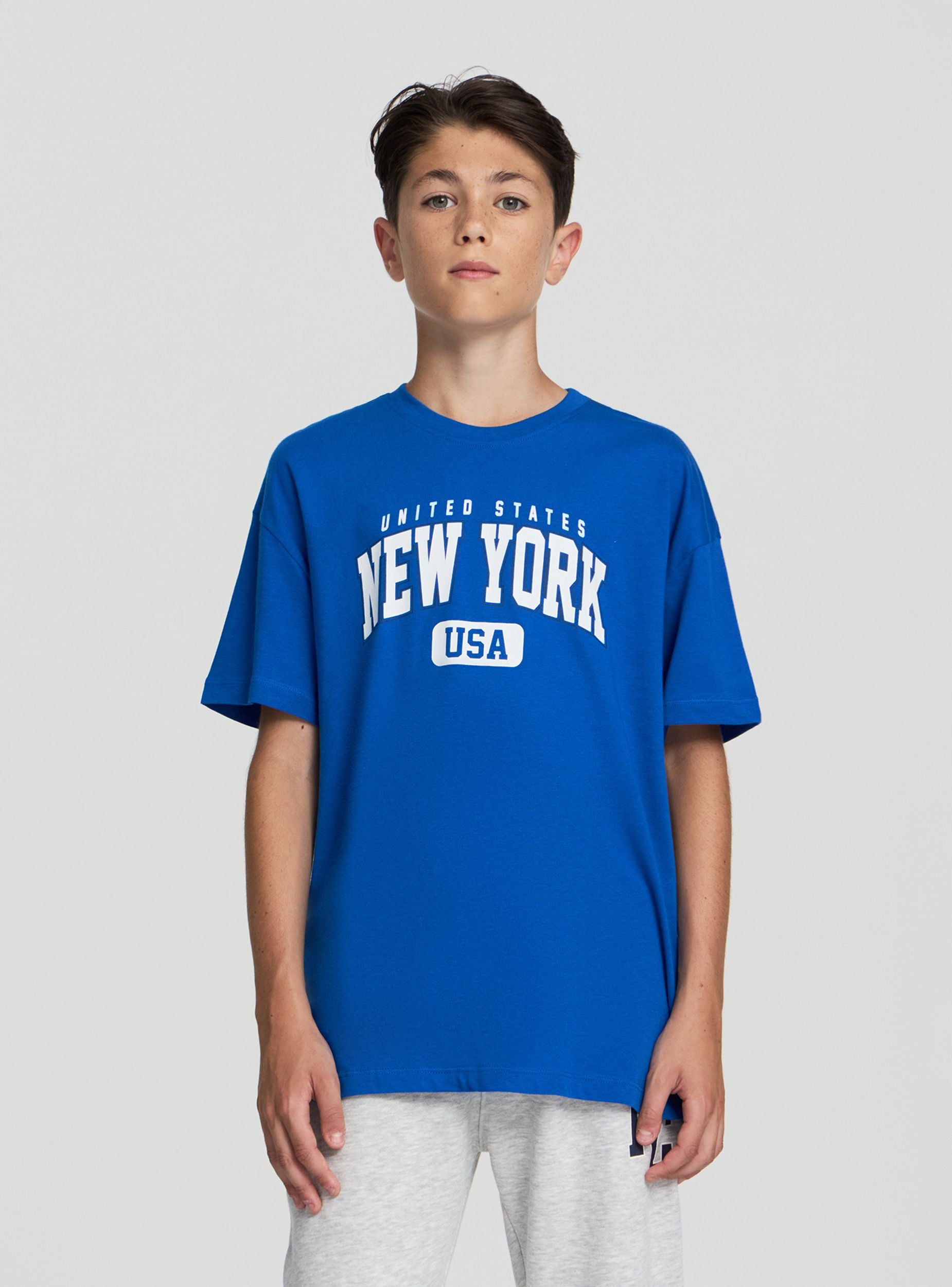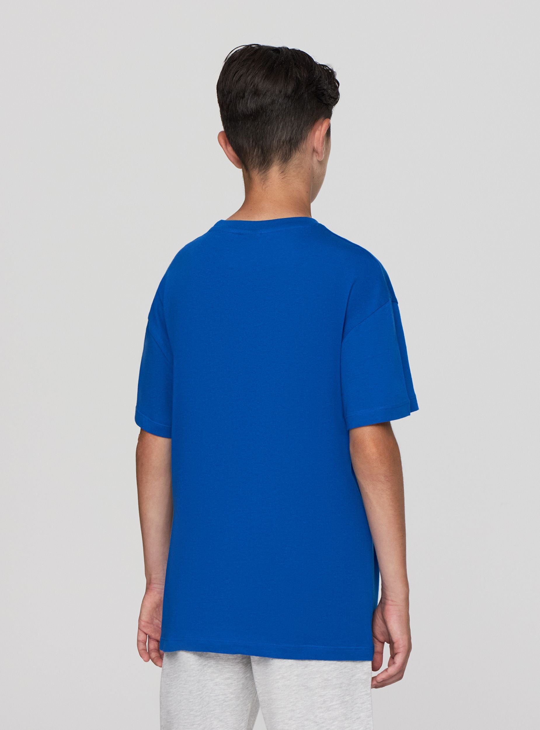 Children's t-shirt with writing. Ideal for a casual and sporty look, this t-shirt pairs perfectly with jeans or shorts for a comfortable and stylish outfit. Perfect for leisure time and outdoor days, it offers a simple and versatile design that suits various occasions.Details