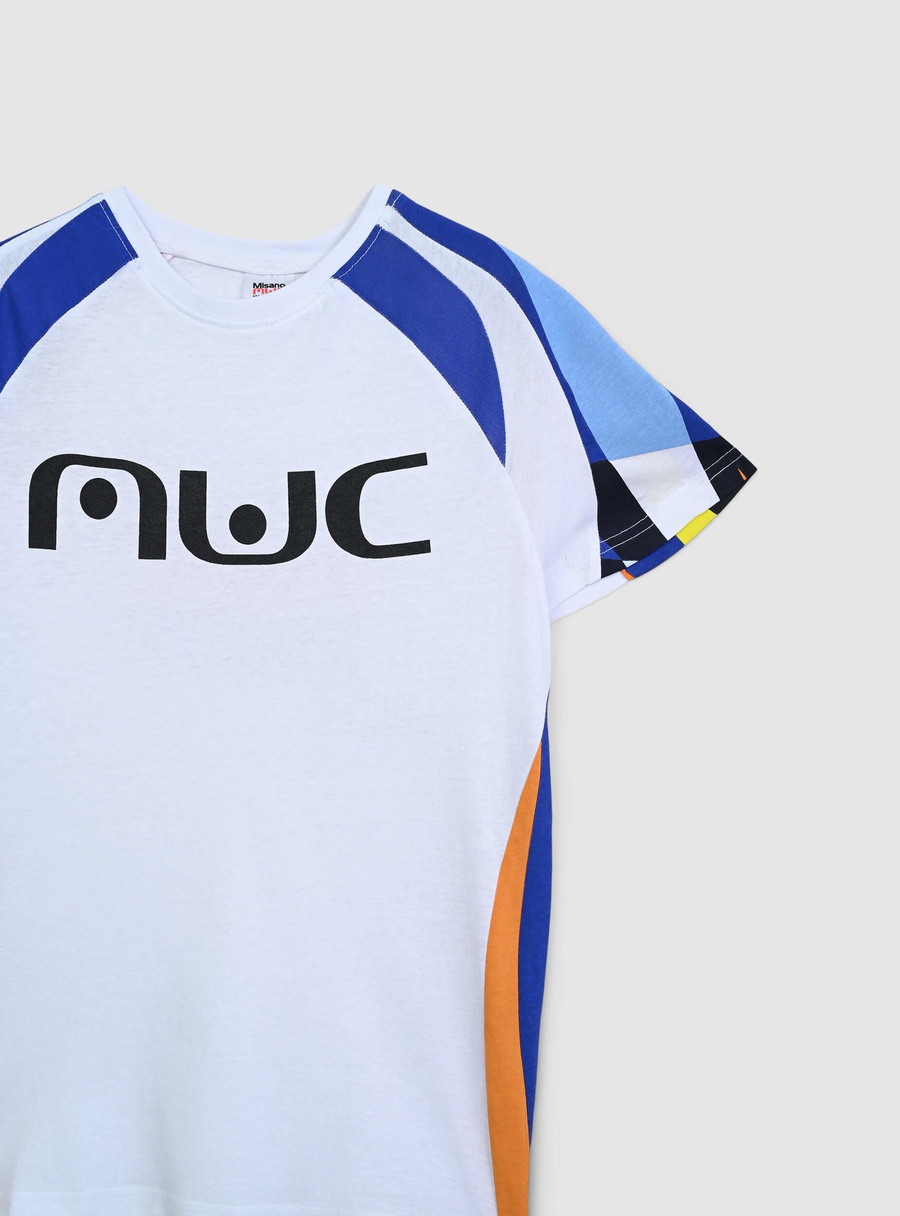 Children's t-shirt ideal for a casual and dynamic look, perfect for leisure time or a sporty outfit. Featuring a regular fit, it has a Misano World Circuit print on the front and back and colourful strip graphic details on the sleeves. A versatile choice for those seeking comfort and style on any occasion.